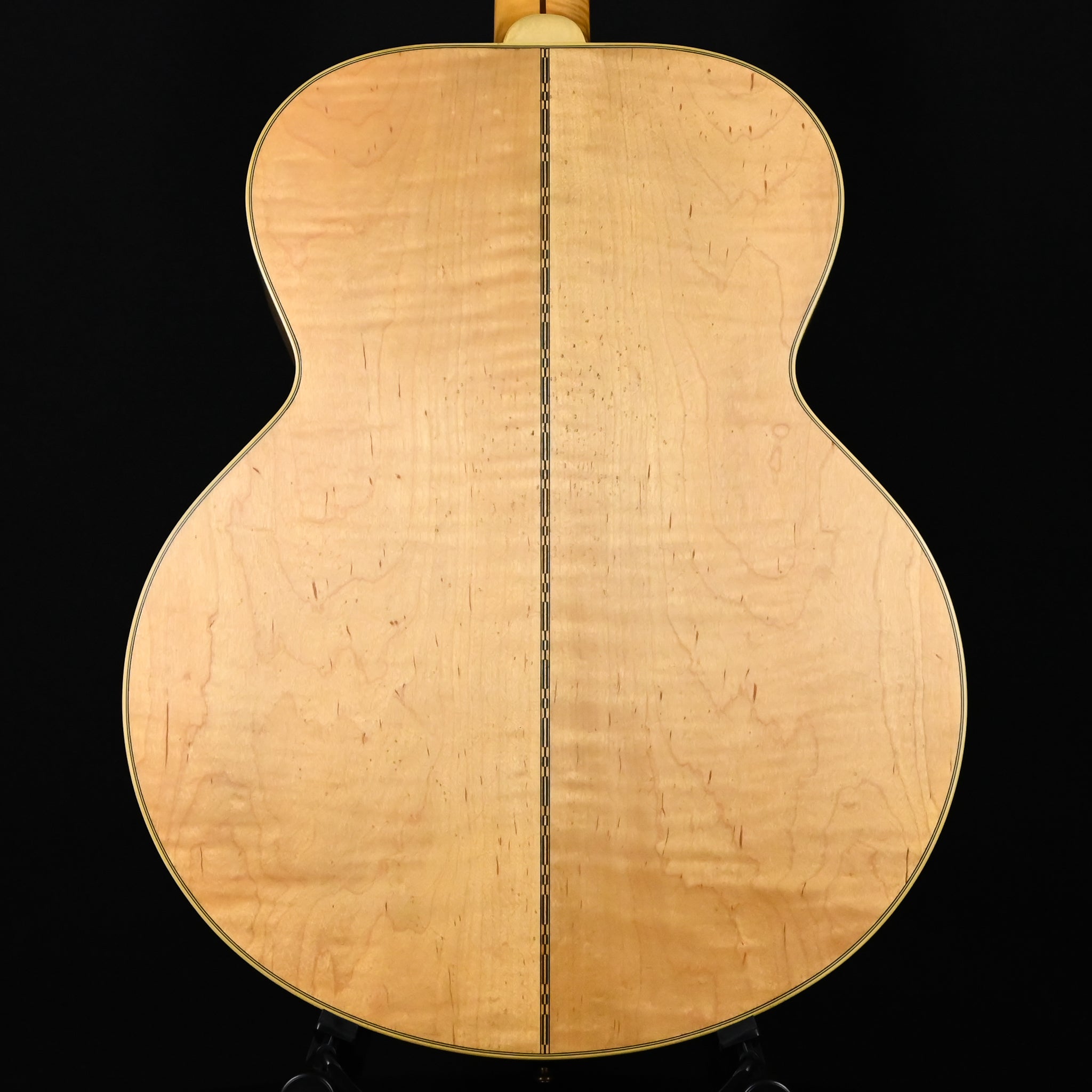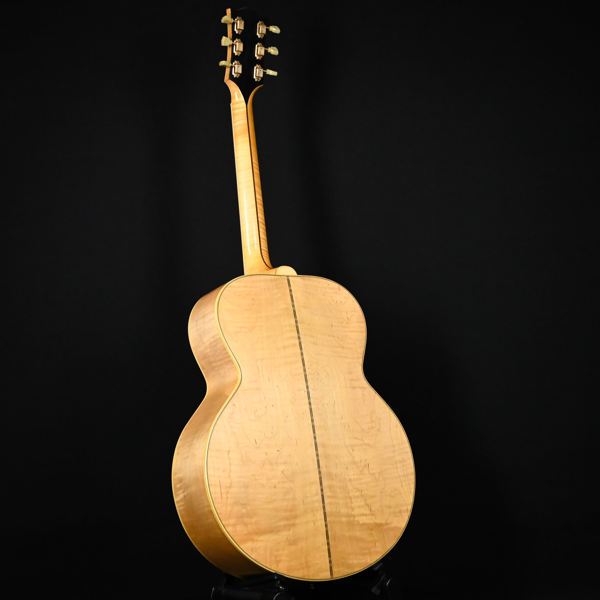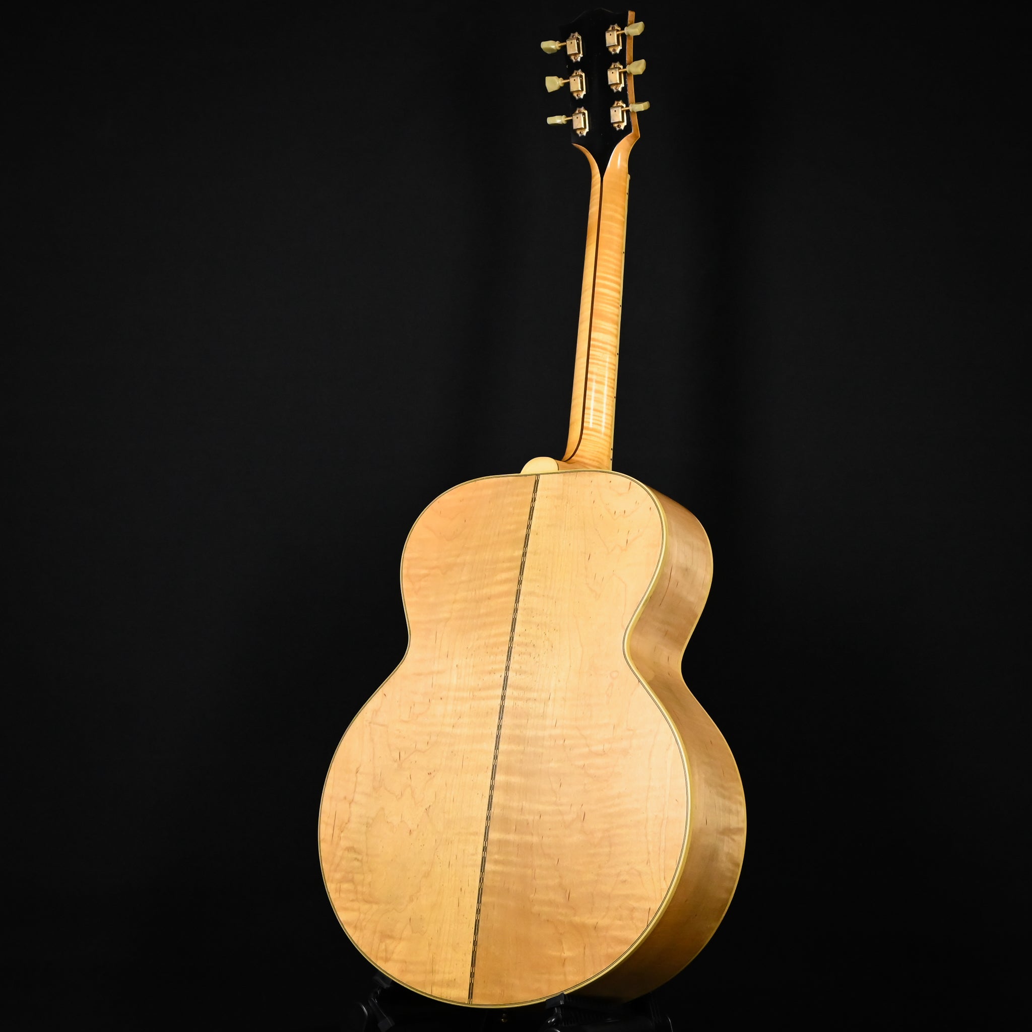 The Gibson SJ-200™ was first introduced in 1937 and quickly earned the moniker “the King of the Flat-Tops” due to its size, high-quality sound, exceptional projection, and commanding stage presence. In 1947, the wood used for the sides and back changed from rosewood to maple. The SJ-200 has been used by everyone from Hollywood cowboys to folk artists, country superstars to rock royalty, and vintage SJ-200 models are in high demand among collectors. Now, Gibson Custom is proud to introduce the 1957 SJ-200 Light Aged, a faithful recreation of those majestic vintage Super Jumbo models. The 1957 SJ-200 Light Aged features a AAA flamed maple back with a checkerboard marquetry strip, AAA flamed maple sides, and a thermally aged Sitka spruce top that is reinforced with traditional scalloped X-bracing that is installed using hide glue.