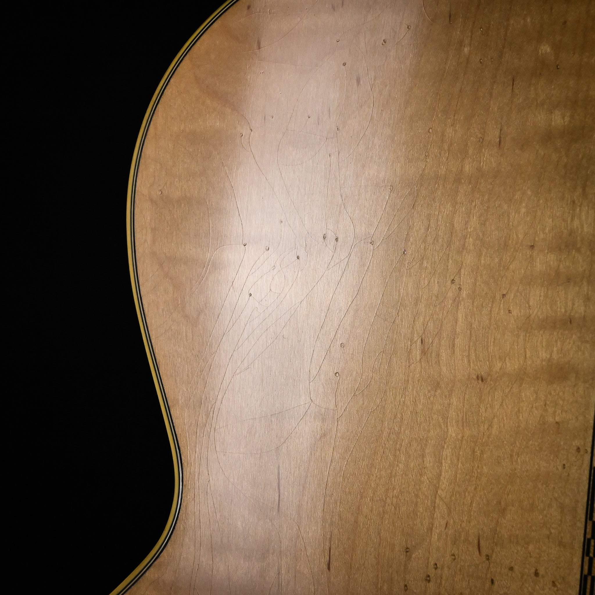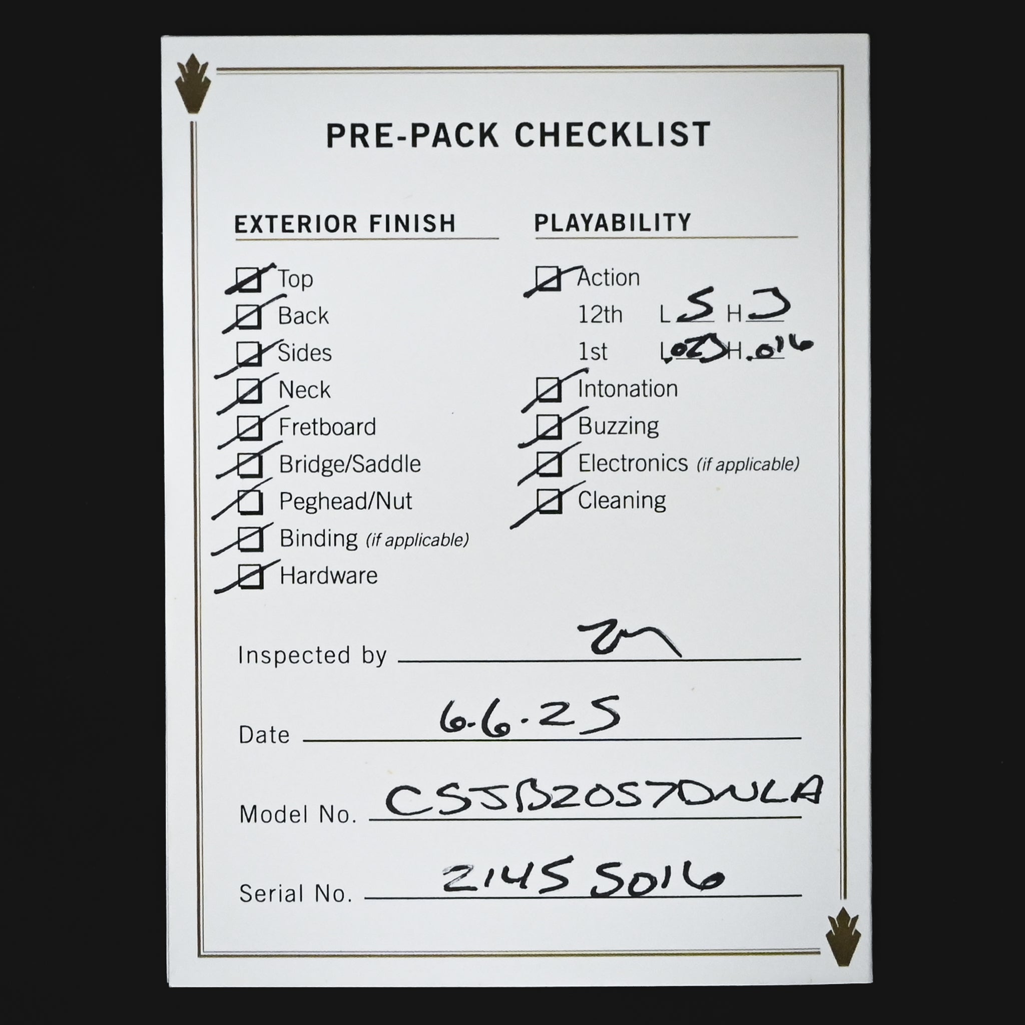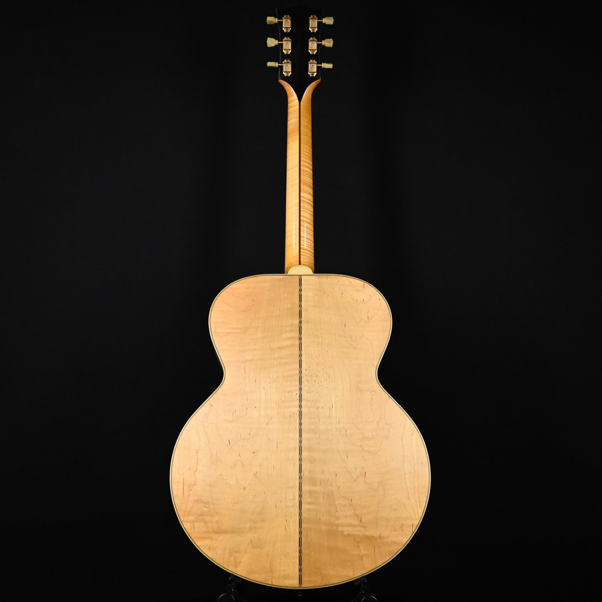 The Gibson SJ-200™ was first introduced in 1937 and quickly earned the moniker “the King of the Flat-Tops” due to its size, high-quality sound, exceptional projection, and commanding stage presence. In 1947, the wood used for the sides and back changed from rosewood to maple. The SJ-200 has been used by everyone from Hollywood cowboys to folk artists, country superstars to rock royalty, and vintage SJ-200 models are in high demand among collectors. Now, Gibson Custom is proud to introduce the 1957 SJ-200 Light Aged, a faithful recreation of those majestic vintage Super Jumbo models. The 1957 SJ-200 Light Aged features a AAA flamed maple back with a checkerboard marquetry strip, AAA flamed maple sides, and a thermally aged Sitka spruce top that is reinforced with traditional scalloped X-bracing that is installed using hide glue.