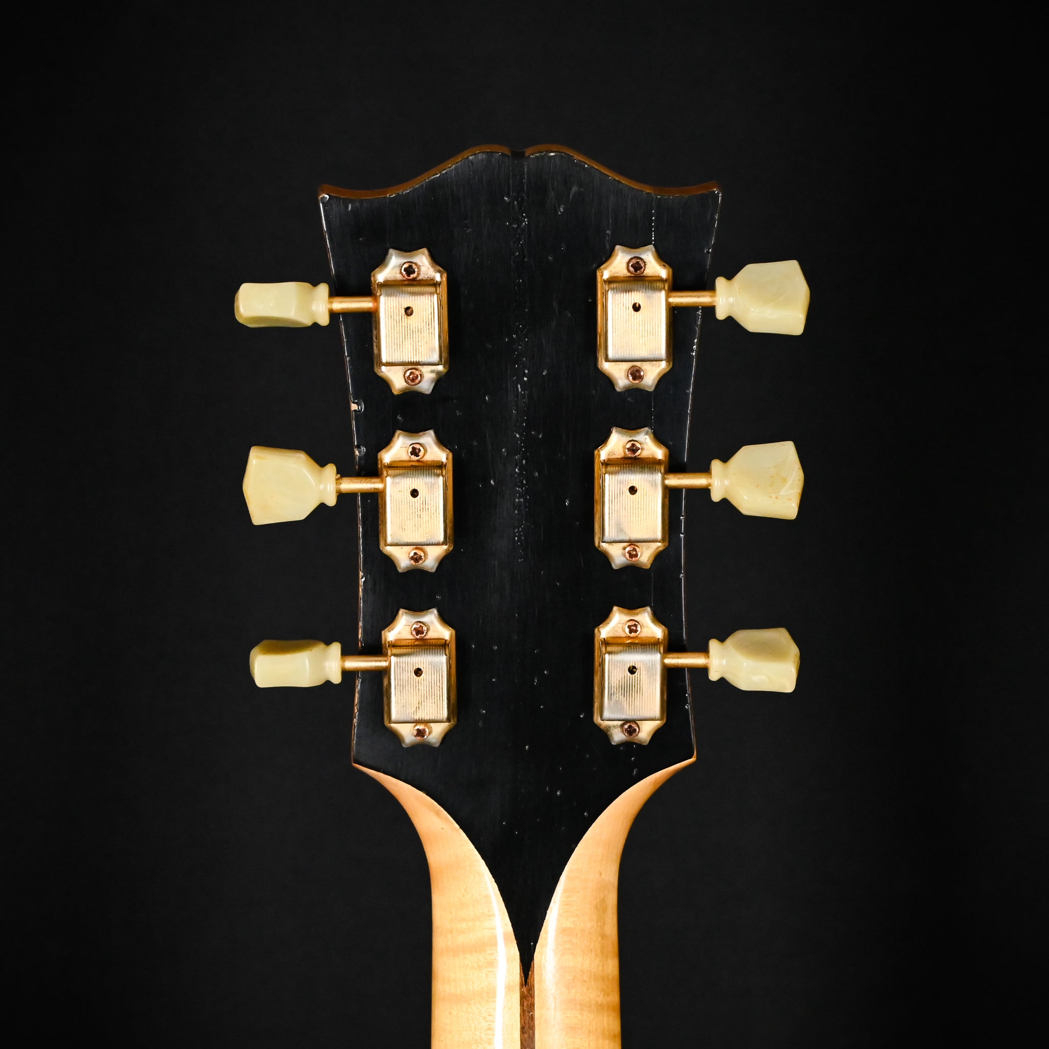 The 1957 SJ-200 Light Aged is highly ornamented, just like the originals, and is adorned with multi-ply top, back, and headstock binding. The 25.5” scale length two-piece AAA maple neck has a walnut stringer, a Round profile, and a stinger on the back of the peghead. The front of the headstock features a mother-of-pearl Gibson logo and Crown inlay and is equipped with gold Gotoh® tuners with Keystone buttons. The bound rosewood fretboard features mother-of-pearl graduated Crown inlays and 20 standard frets. The nut, saddle, and bridge pins are bone. The rosewood SJ-200 Four Bar Moustache™ bridge also has mother-of-pearl inlays, and the tortoise SJ-200 pickguard features the classic SJ-200 graphics. As the name suggests, the 1957 SJ-200 Light Aged features Light Aging by the skilled artisans of the Murphy Lab. The Murphy Lab Light Aged finish treatment, paired with lightly aged hardware, simulates decades of light play wear, giving the 1957 SJ-200 Light Aged the unique character, vibe, and feel of an original example from the Gibson Golden Era. The 1957 SJ-200 Light Aged comes packed in a period-correct 50s-style Lifton™ hardshell case to complete the authentic vintage playing and ownership experience that only Gibson Custom and the Murphy Lab can deliver.