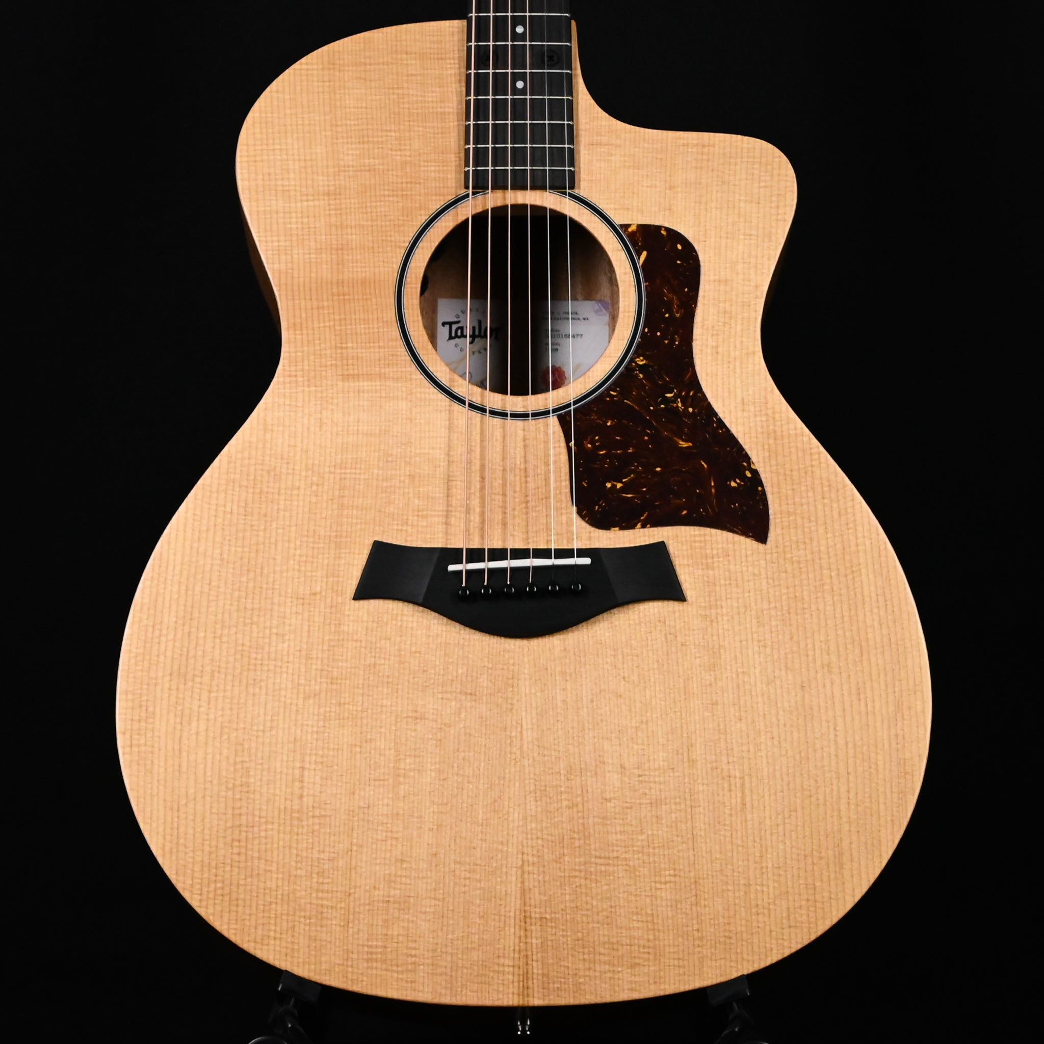 Offering the accommodating feel and vibrant sound of a full-size, standard-scale cutaway Grand Auditorium, the Taylor 14ce delivers great value for players in earch of a versatile, reliable acoustic-electric. Layered African sapele back and sides paired with a solid torrefied spruce top produce a clear, articulate voice with impressive projection and a touch of sweetness, thanks to our special roasting process that adds warmth and maturity to the tone. Cantilevered V-Class voicing architecture inside the guitar enhances the sustain, volume and low-end response, while a slender, heelless maple neck delivers familiar Taylor playability. Minimalist appointments like a matte finish, 4mm dot inlays and faux-tortoiseshell pickguard add to the 14ce’s understated visual appeal. It ships in a gig bag with an onboard Fishman Sonitone GT-2 pickup for amplified play across a wide range of musical settings.