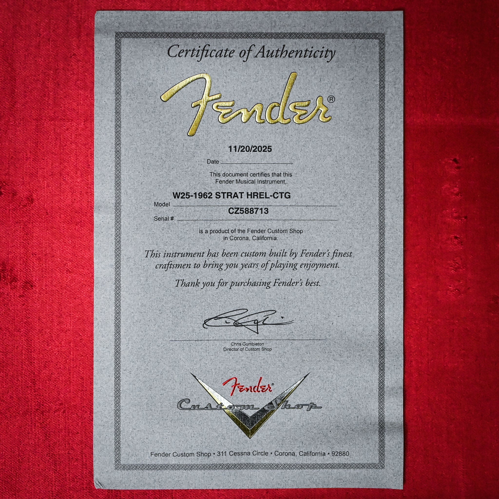 Fender Custom Shop 1962 Stratocaster w/ Handwound 60/63 Pickups, Heavy Relic- Candy Tangerine 2025 (CZ588713)