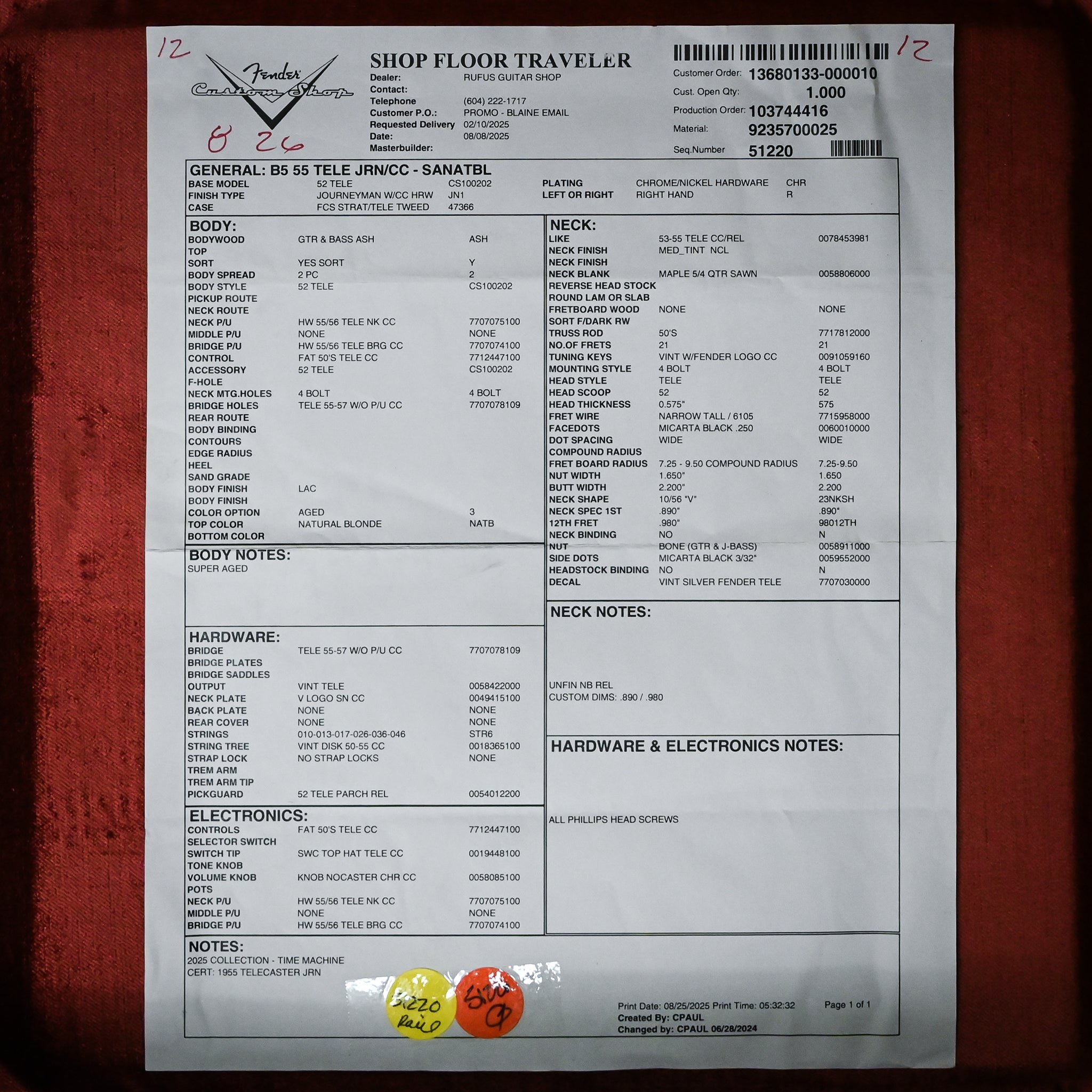 Body Finish: Aged Natural Blonde, Journeyman w/ Closet Classic Hardware Body Material: 2 Piece Sorted Ash