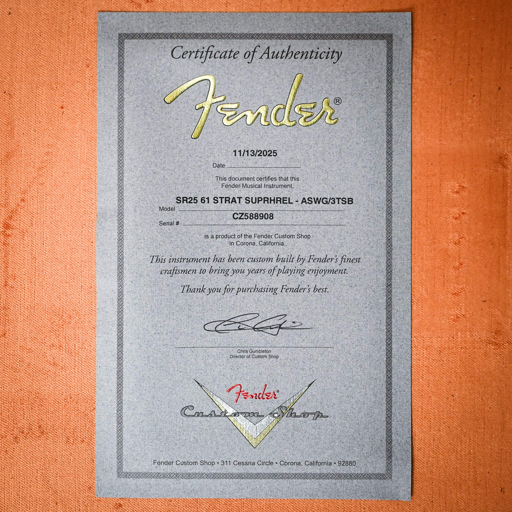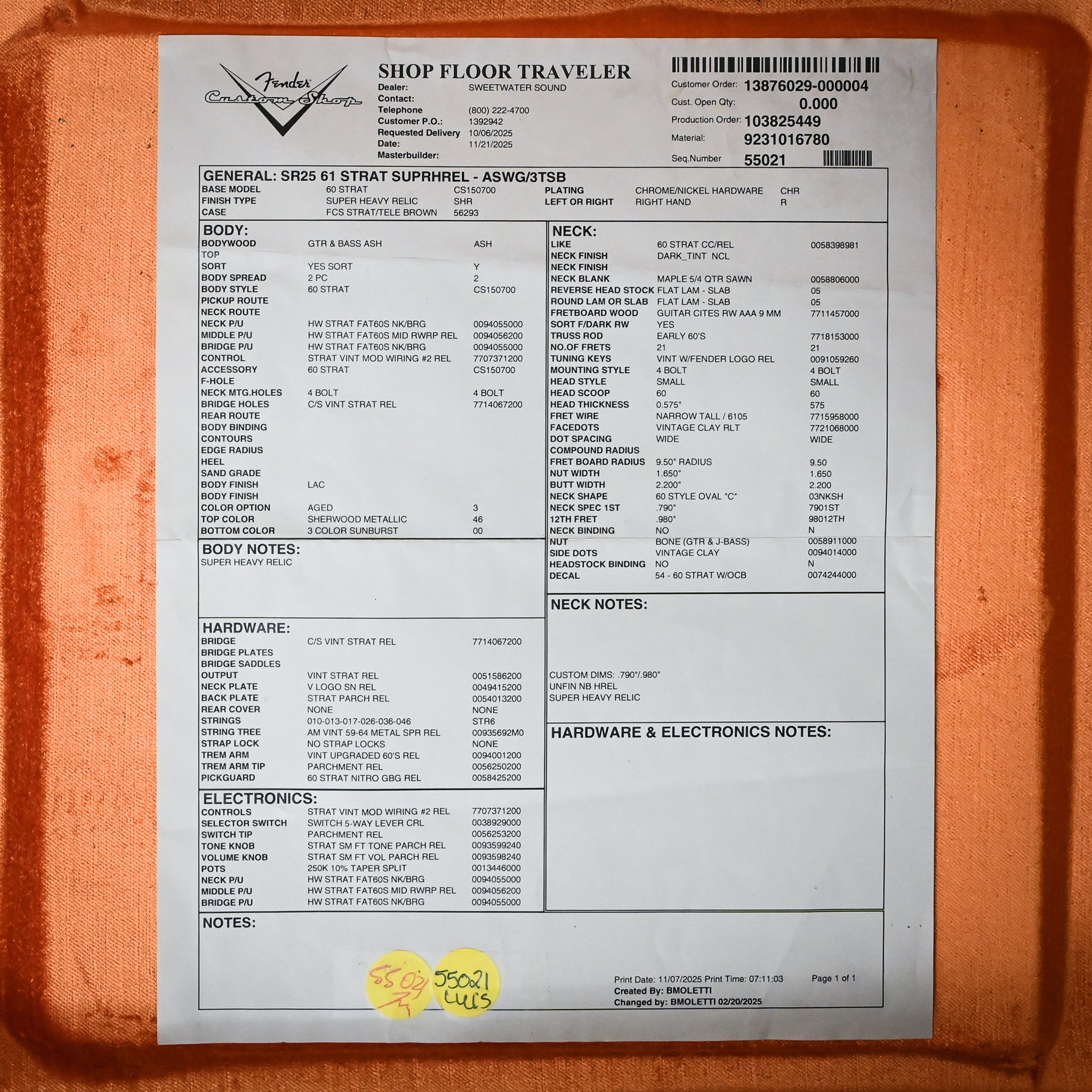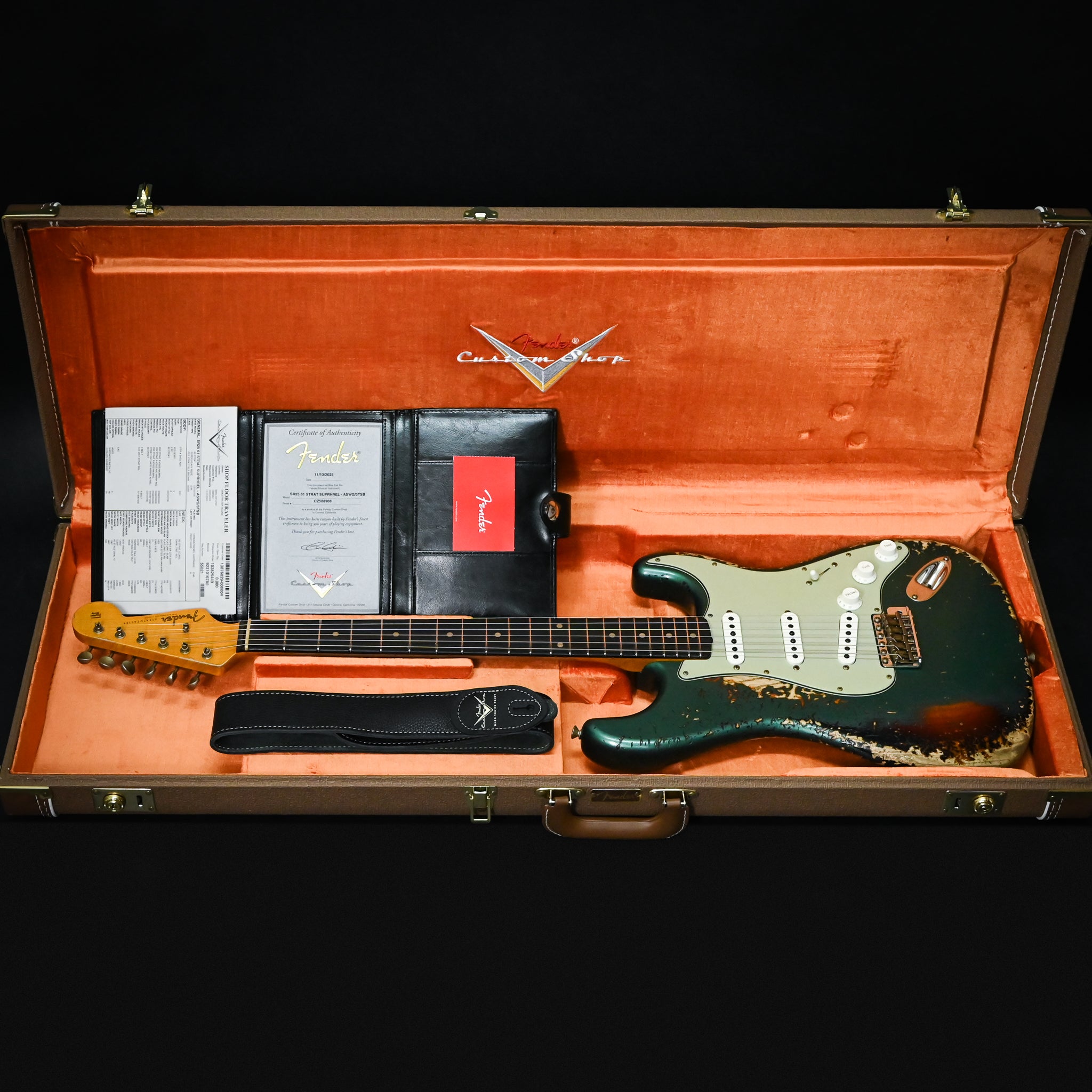 Body Finish: Aged Sherwood Metallic/ 3-Tone Sunburst, Super Heavy Relic Body Material: 2 Piece Sorted Ash