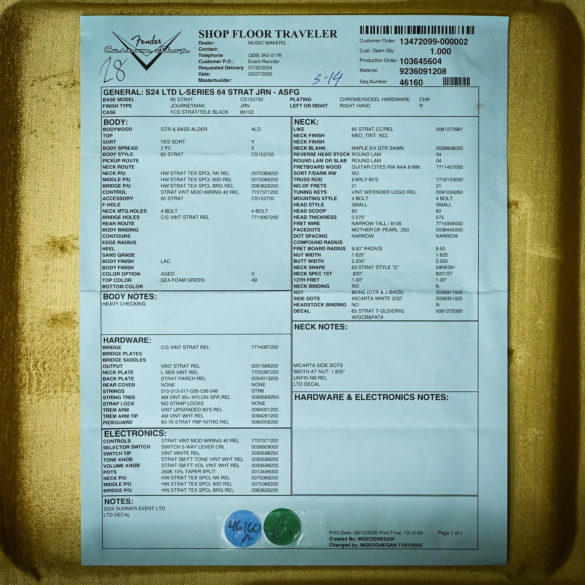 Fender Custom Shop Limited Edition L-Series '64 Stratocaster w/ HW Texas Special Journeyman- Aged Sea Foam Green 2025 (L11682)