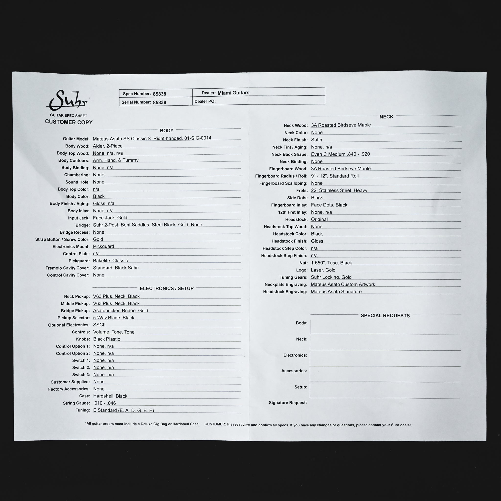 Suhr Mateus Asato Signature Series Classic S Electric Guitar- Black 2025 (85838)