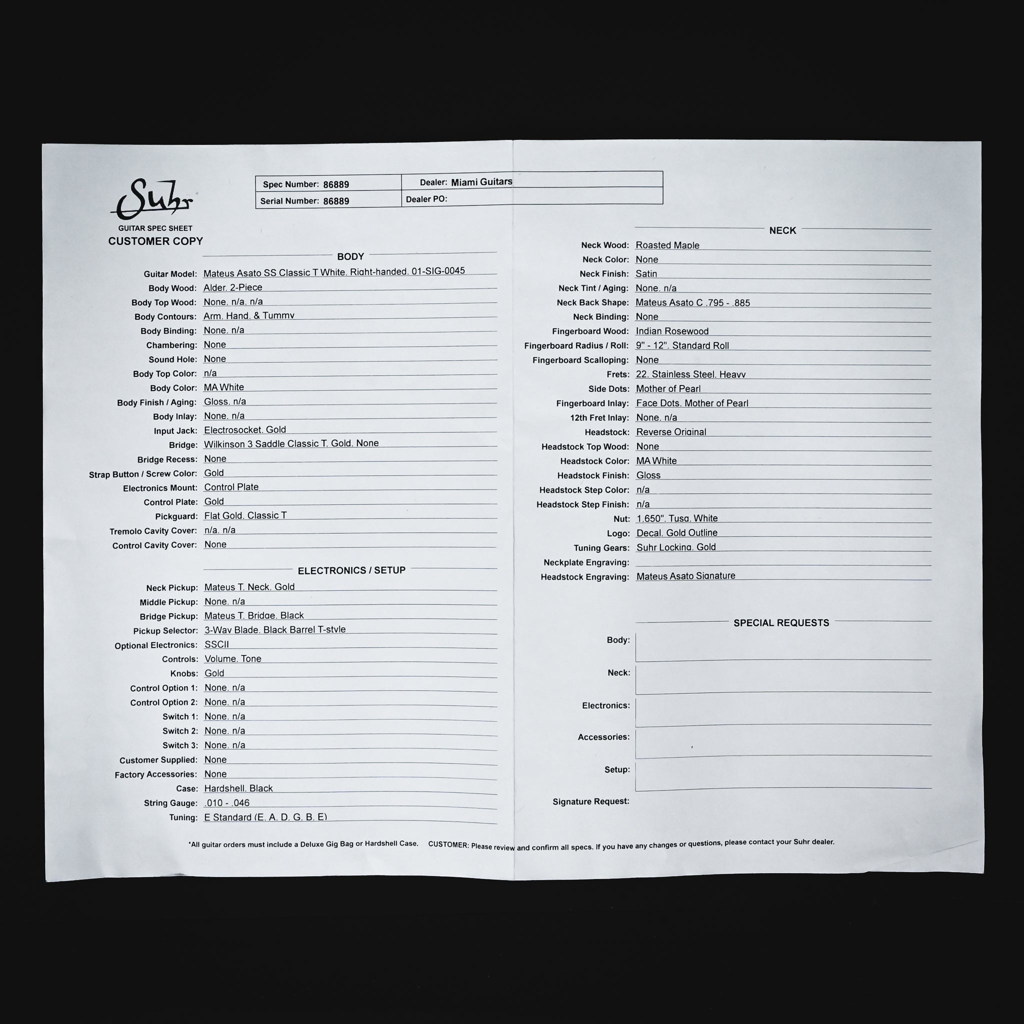 Miami-Guitars is an authorized Suhr Dealer/ Factory Warranty included. Please send us a message on Reverb if you have any questions or concerns regarding the instrument of your interest.