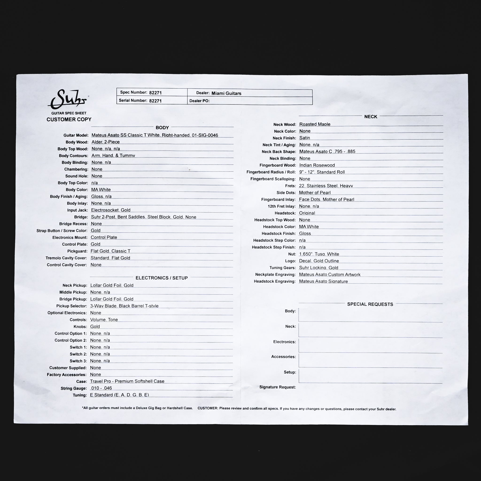 Miami-Gutiar is an authorized Suhr Dealer/ Factory warranty included. If you have any questions or concerns regarding the instrument of your interest, please feel free to send us a message or give us a call.