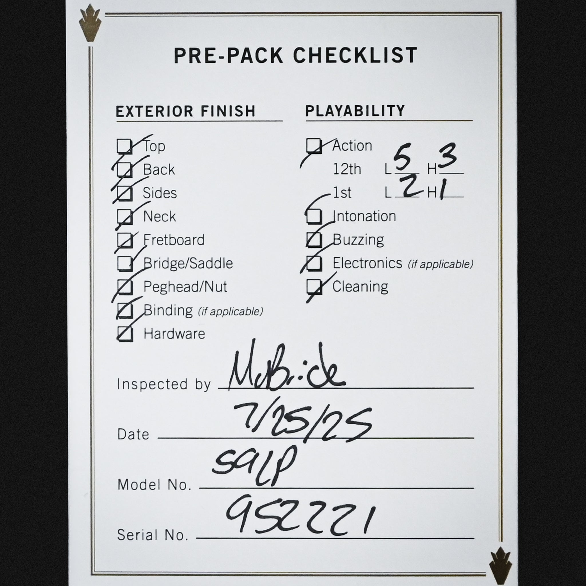 Top: 2-Piece Figured Maple, Hide Glue Fit