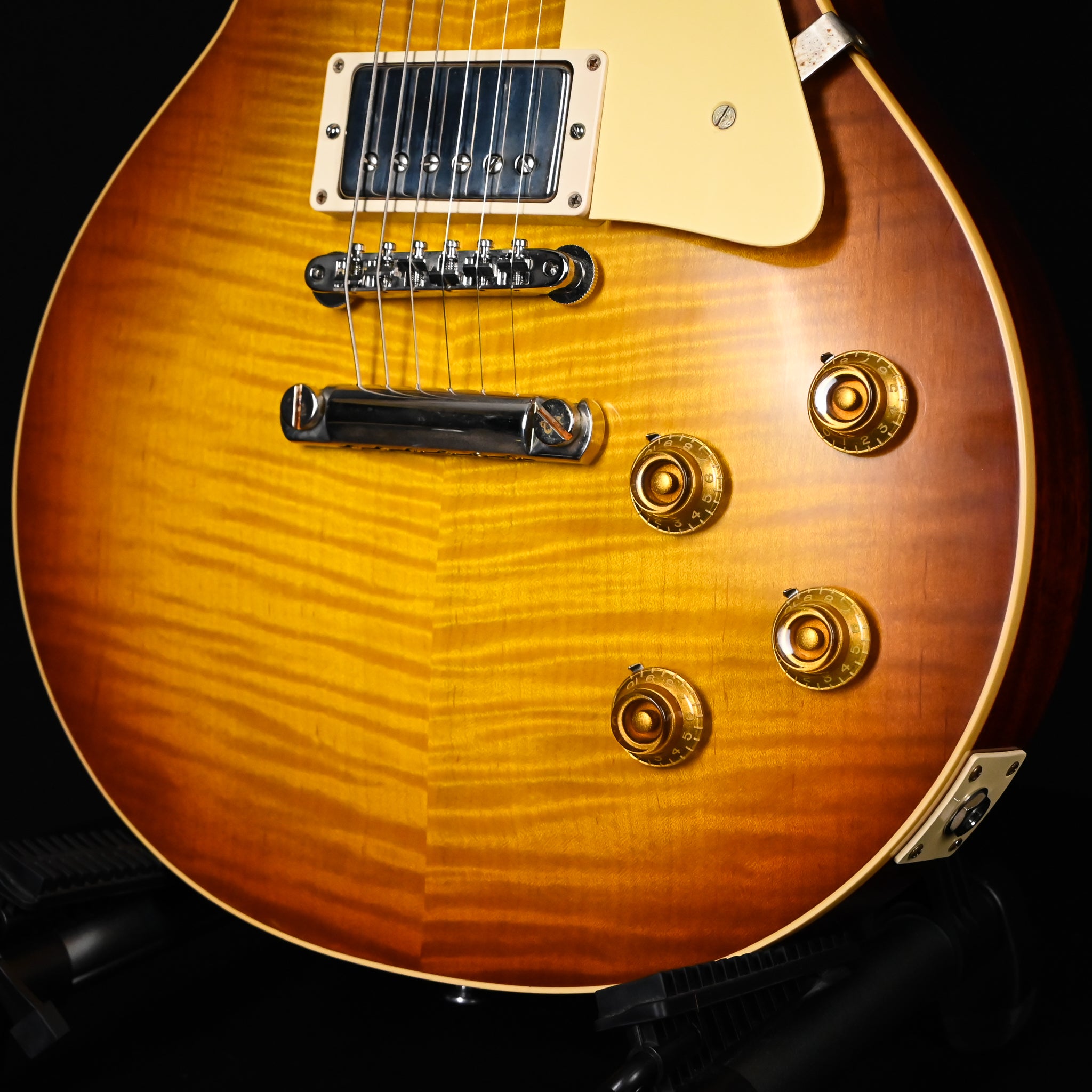 Gibson Custom's 1959 Les Paul Standard Reissue is not just a tribute to the priceless original models -- it's a clone of them. From laser-scanned dimensions to chemically-recreated plastics to color-matched shades of sunburst, every element has been rendered in unbelievable detail. It represents the culmination of decades of work by Gibson Custom's expert team -- a tireless quest to bring accuracy and authenticity to the hands of fans. It’s the definition of cool, and it's the best representation of the 1959 Les Paul Standard since Gibson Custom began making Historic Reissues over twenty-five years ago.
