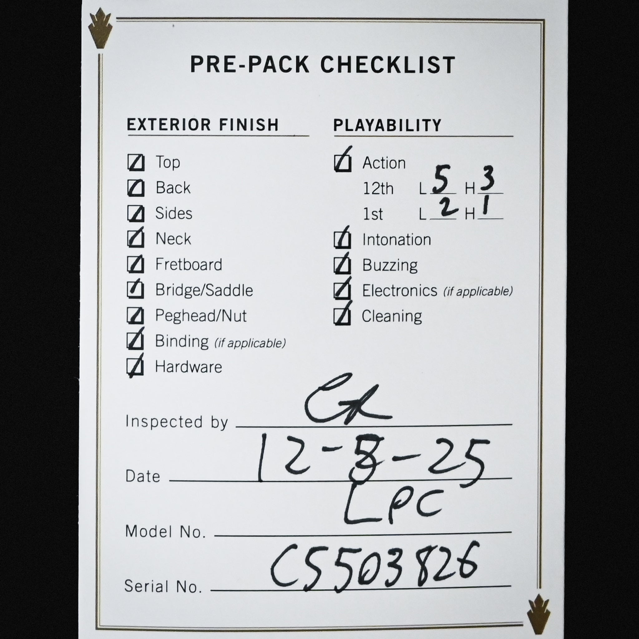 Fingerboard Radius: 304.8 mm / 12 in