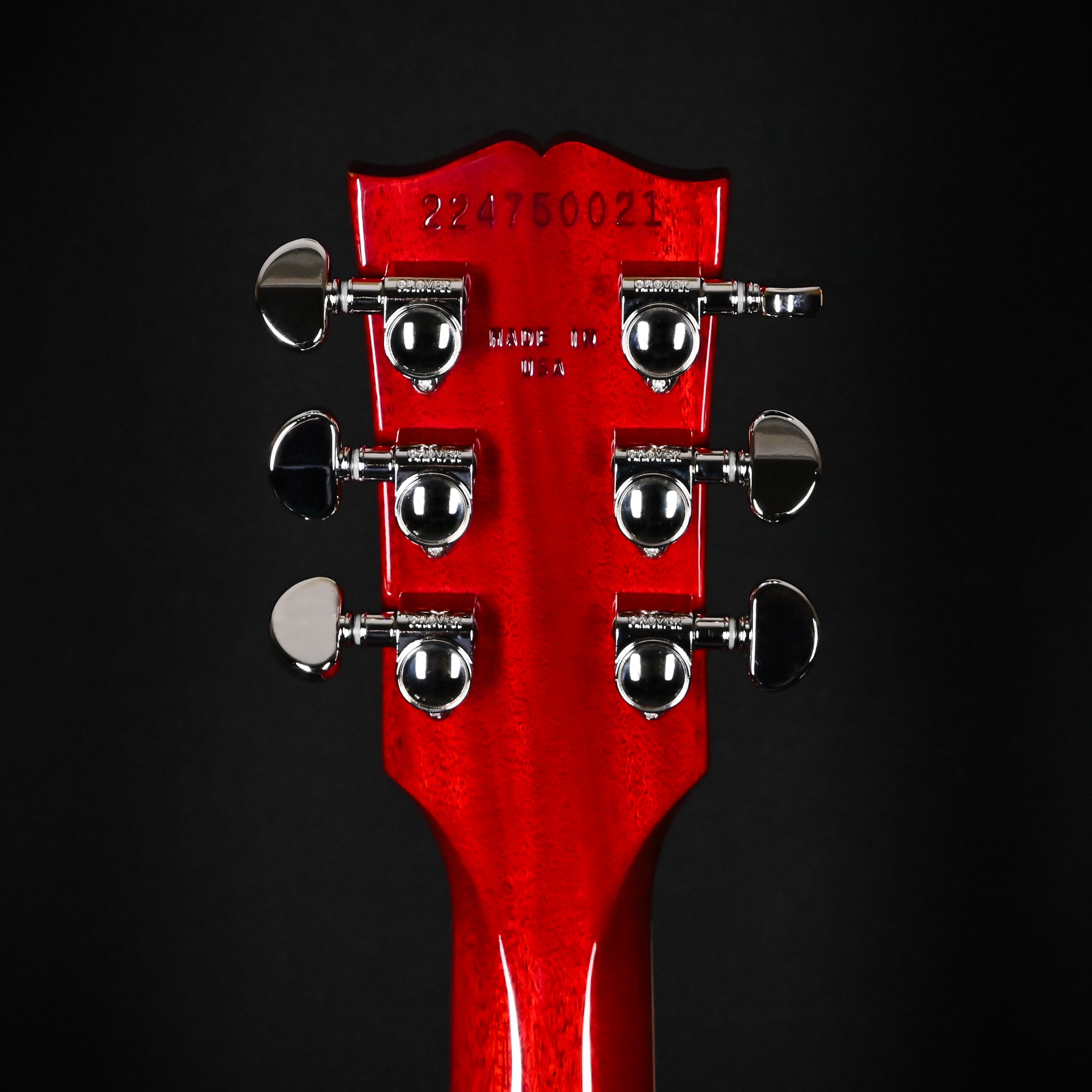 The Les Paul Standard 60s has a non-weight-relieved solid mahogany body with an AA figured maple top that adds a bit of extra sustain and bite to the warmth and midrange punch of the mahogany. The mahogany neck has a fast-playing SlimTaper™ profile for hours and hours of comfortable play, while the bound Indian rosewood fretboard is outfitted with 22 medium jumbo frets and is adorned with acrylic trapezoid inlays. The 12” fretboard radius makes it equally comfortable when you’re playing first-position chords or bending the strings further up the neck, and despite the low action, there’s no risk of string bends choking out.