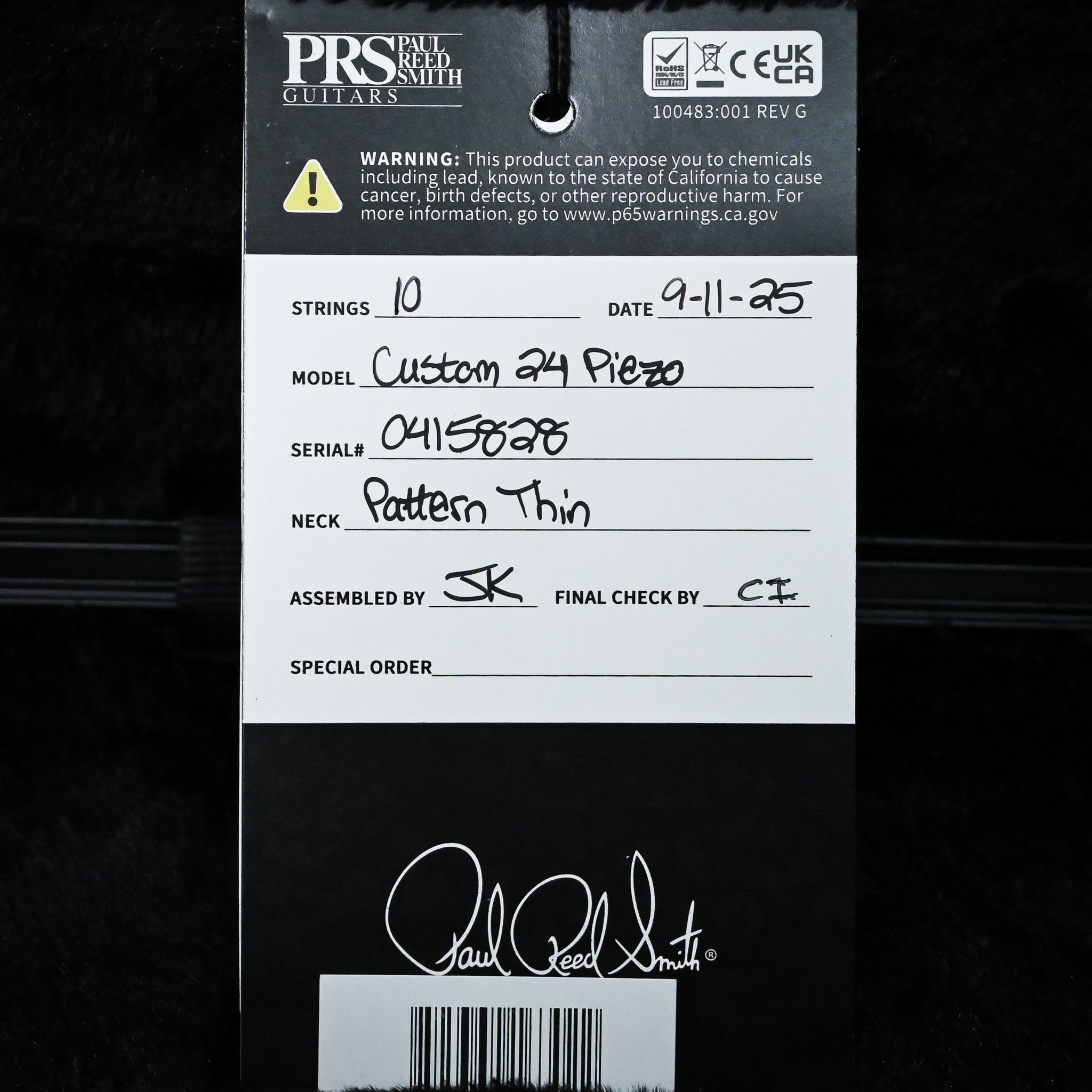The Custom 24 Piezo is a 24-fret solidbody piezo-equipped guitar that effortlessly achieves classic humbucker tones and authentic acoustic sounds in one instrument. The added versatility of PRS’s patented Gen III tremolo gives musicians a new and unique tool to add to their lineup.