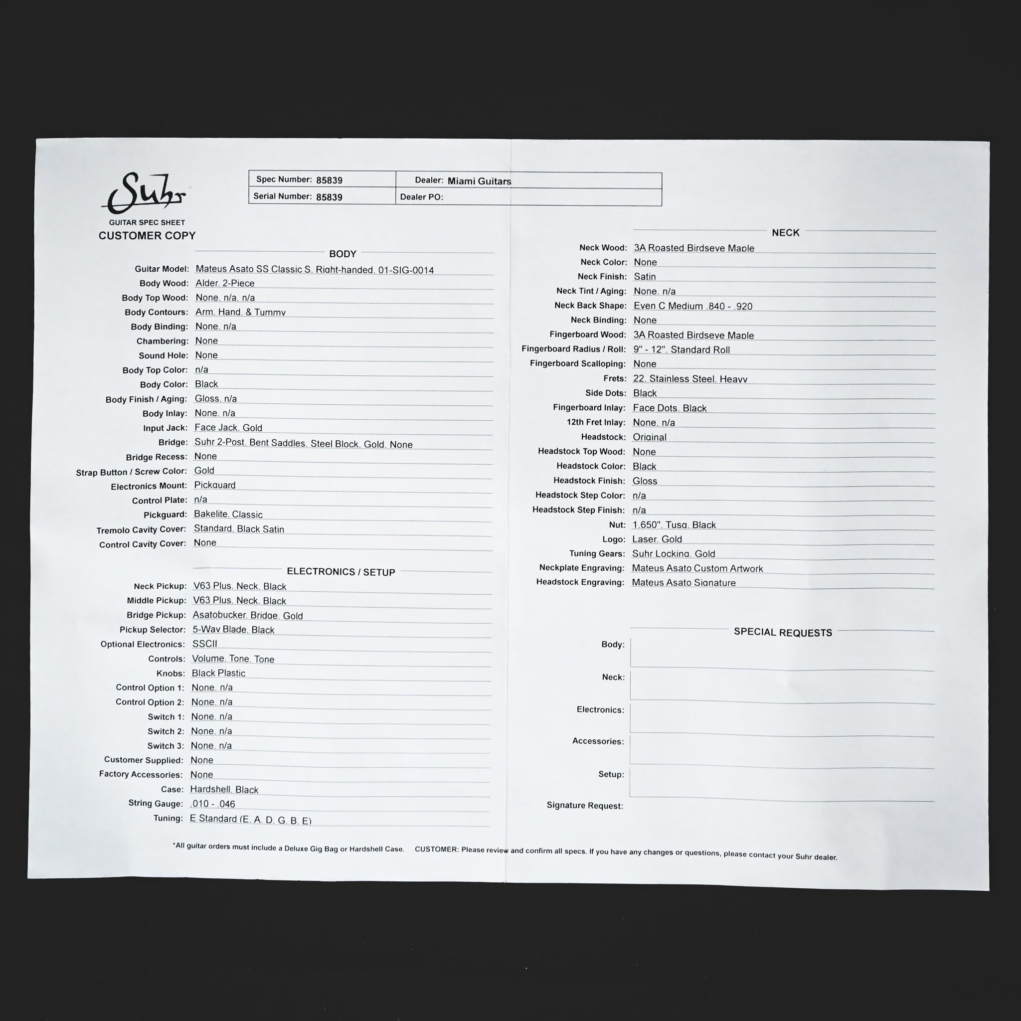 Suhr Mateus Asato Signature Series Classic S Electric Guitar- Black 2025 (85839)