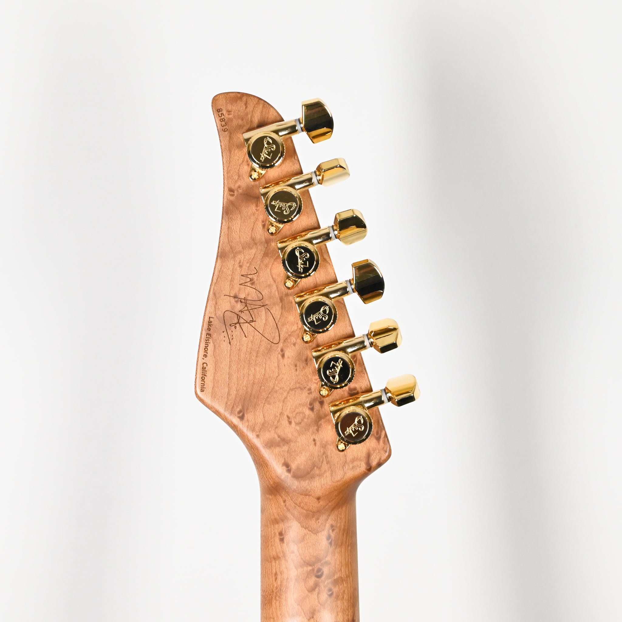 The Mateus Asato Signature Series is available in two finishes: Gloss Black and Antiqued Shell Pink. Both models feature our Even C Medium neck profile, which is carved from silky-smooth satin finished Roasted Maple. The Indian Rosewood fingerboard features our 9″-12″ compound radius and is appointed with 22 stainless steel heavy frets. A 2-Post Tremolo, V63+ single-coils, and Custom Alnico humbucker complete the specs. Each guitar comes with a special laser-engraved neck plate, Mateus’ signature on the back of the headstock, and is delivered in a classy black tolex hardshell case.
