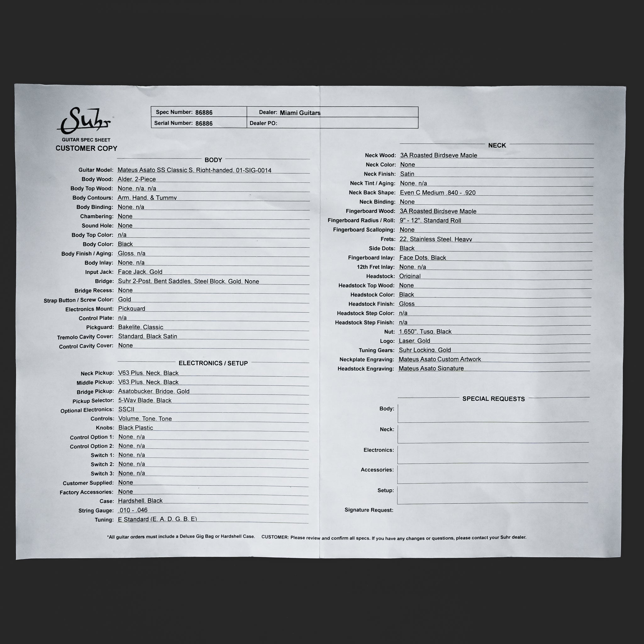 Suhr Mateus Asato Signature Series Classic S Electric Guitar- Black 2025 (86886)