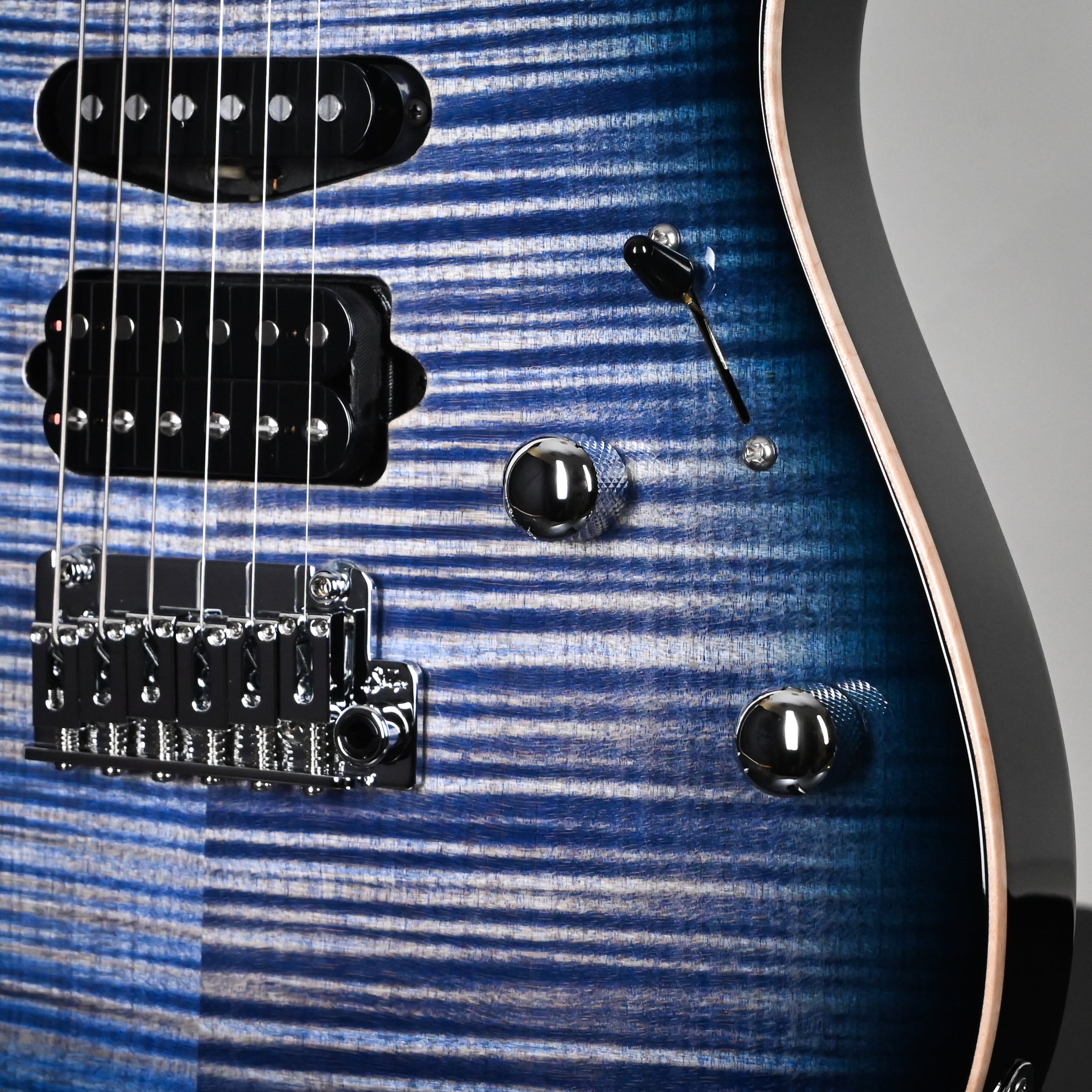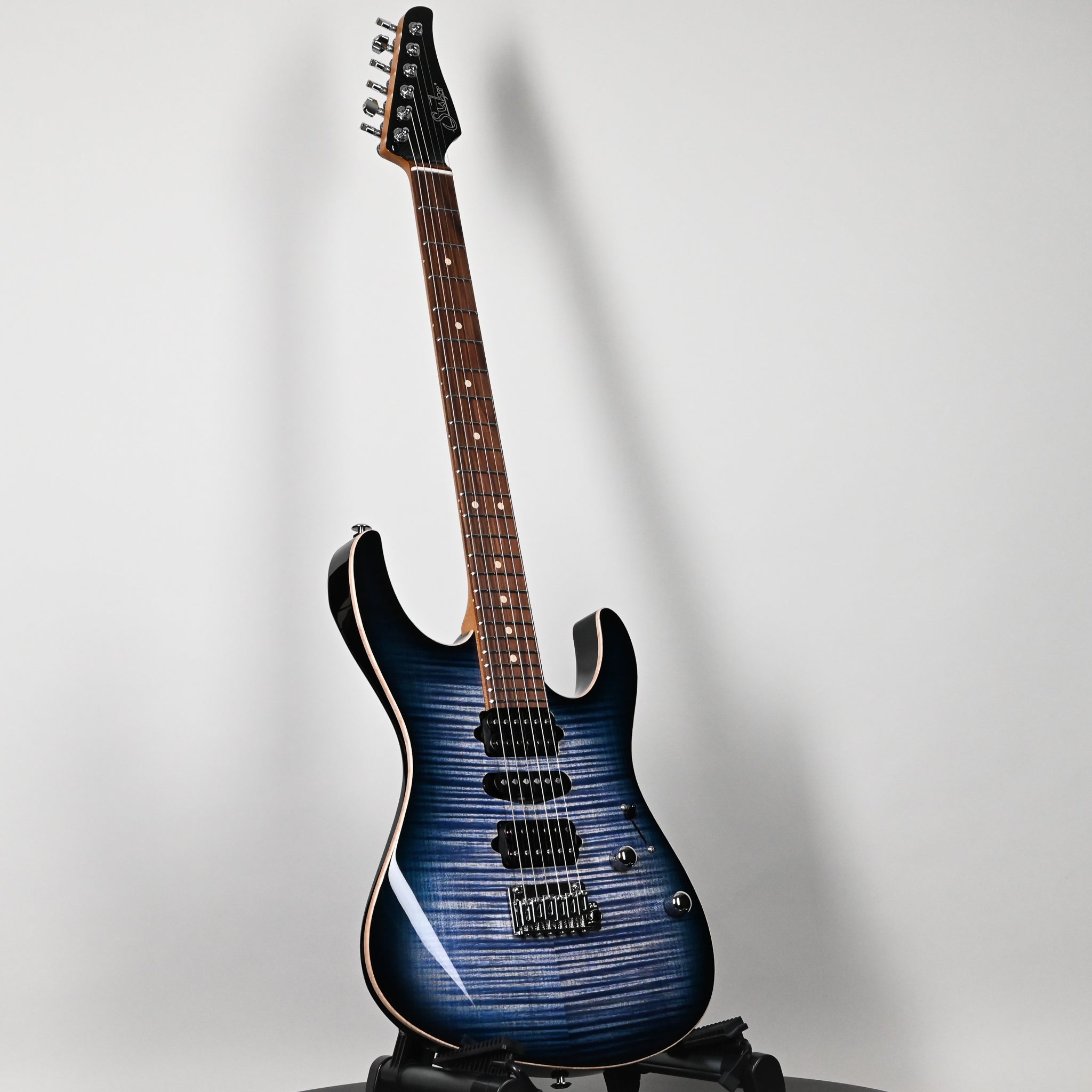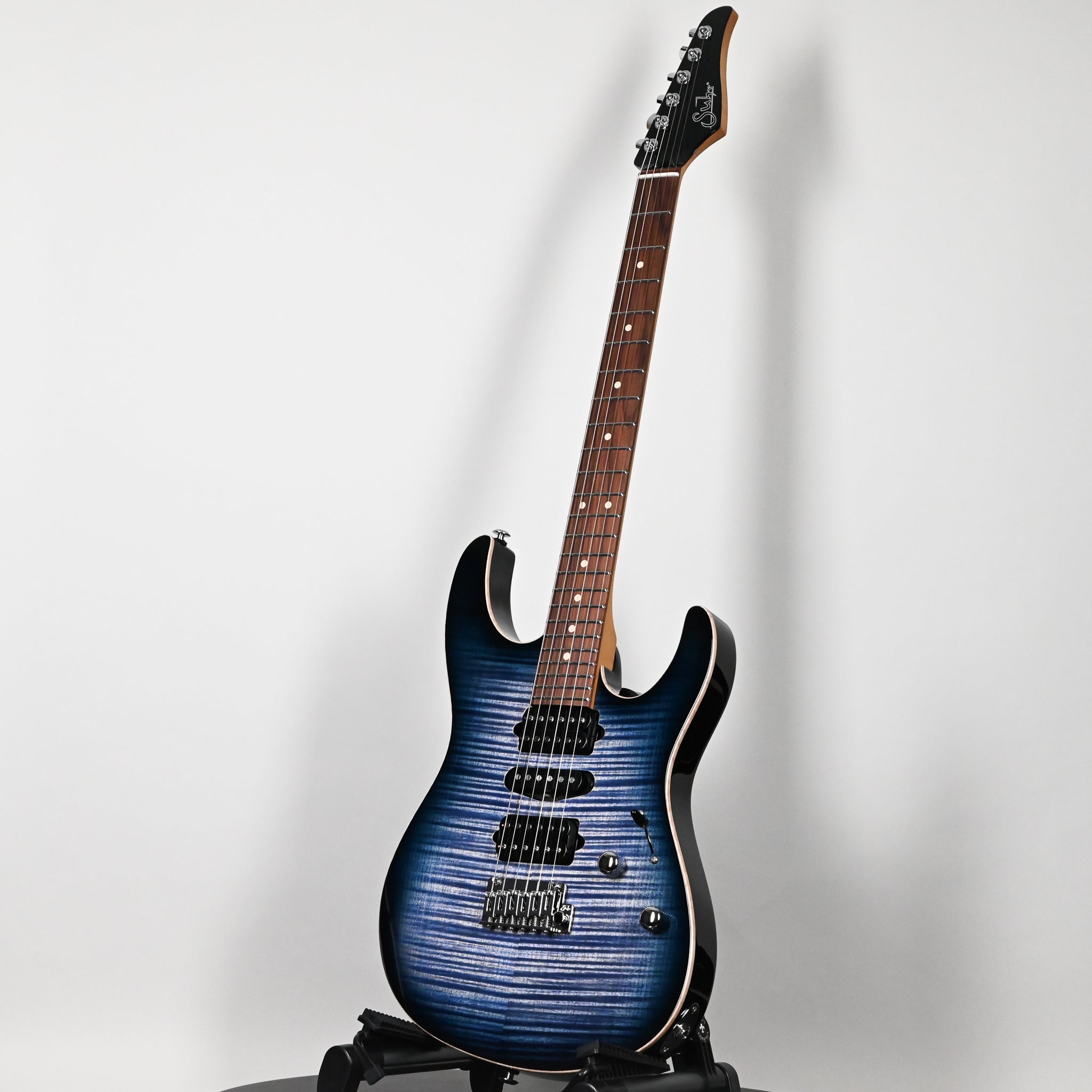 The Modern Plus features a roasted maple neck with pau ferro or maple fingerboard. The Modern Plus retains many of the original specifications of the Modern Pro including the sleek elliptical neck profile, balanced asymmetrical body, innovative neck heel and stunning flame maple top. Proprietary Suhr locking tuners and 2-Post tremolo provides superior tuning stability.