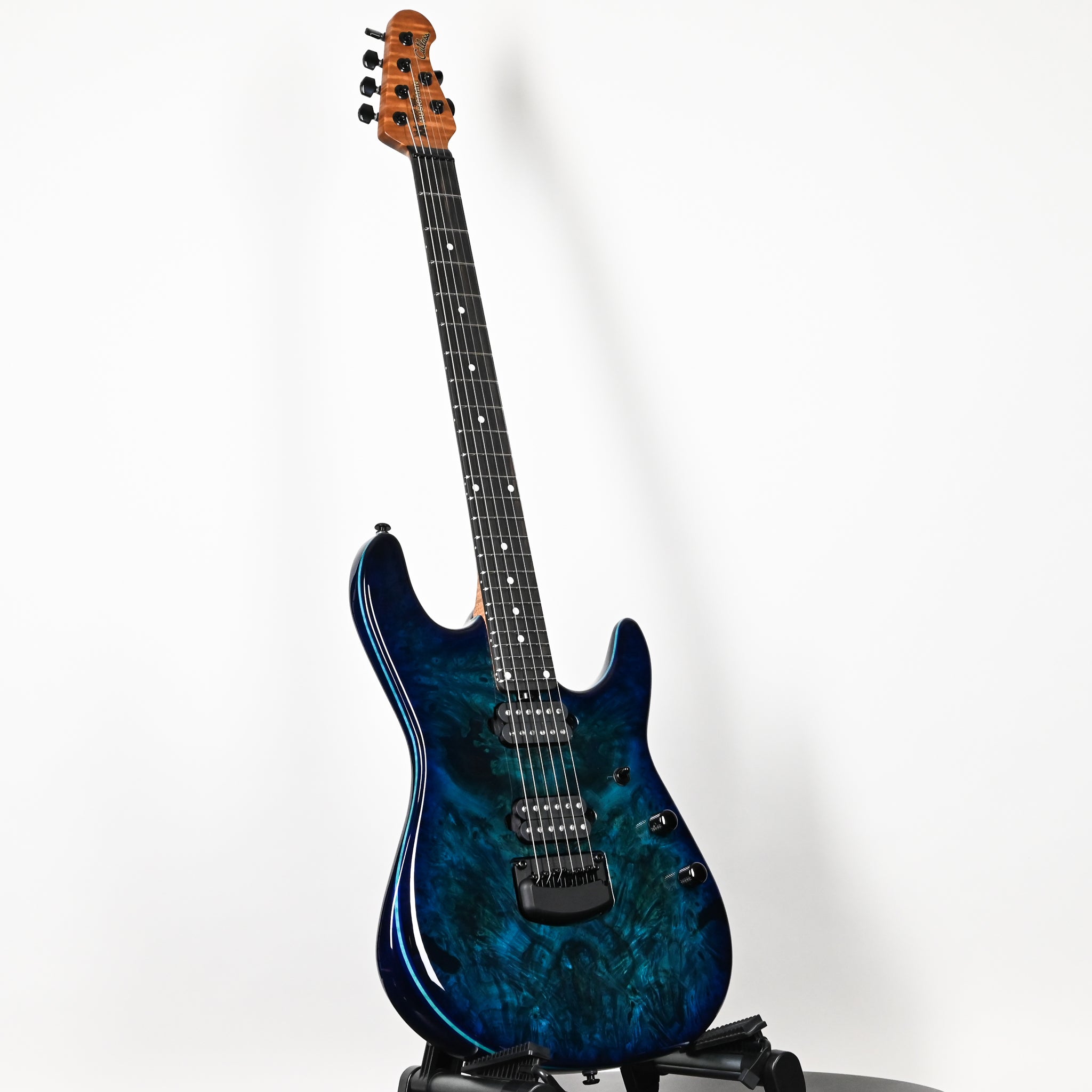 Introducing the all-new 2026 Water Temple and Death Mountain finishes for the Ernie Ball Music Man Jason Richardson Artist Series Cutlass HT Guitar. Each model features an alder body with a buckeye burl top, paired with a roasted, figured maple neck and ebony fretboard for exceptional feel and visual impact. Equipped with the exclusive Jason Richardson HT humbuckers, these guitars deliver unmatched clarity, power, and tonal versatility. Additional pro-level features include 24 stainless steel frets, a custom Music Man tremolo, a push/push volume knob offering a 20+ dB boost, and coil-splitting via the push/push tone control. These new finishes join the fan-favorite Kokiri Forest, offering players a lineup of striking options built for precision, expression, and modern performance.