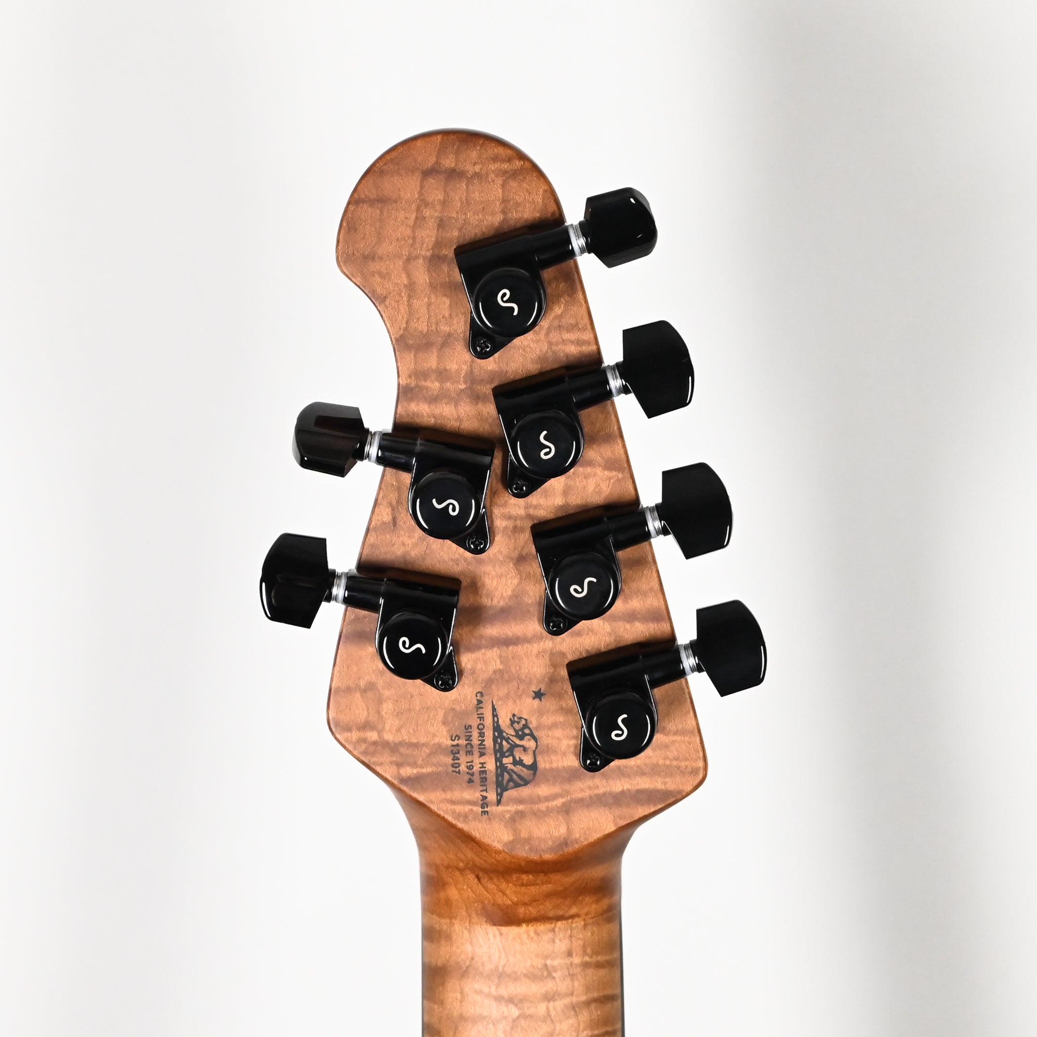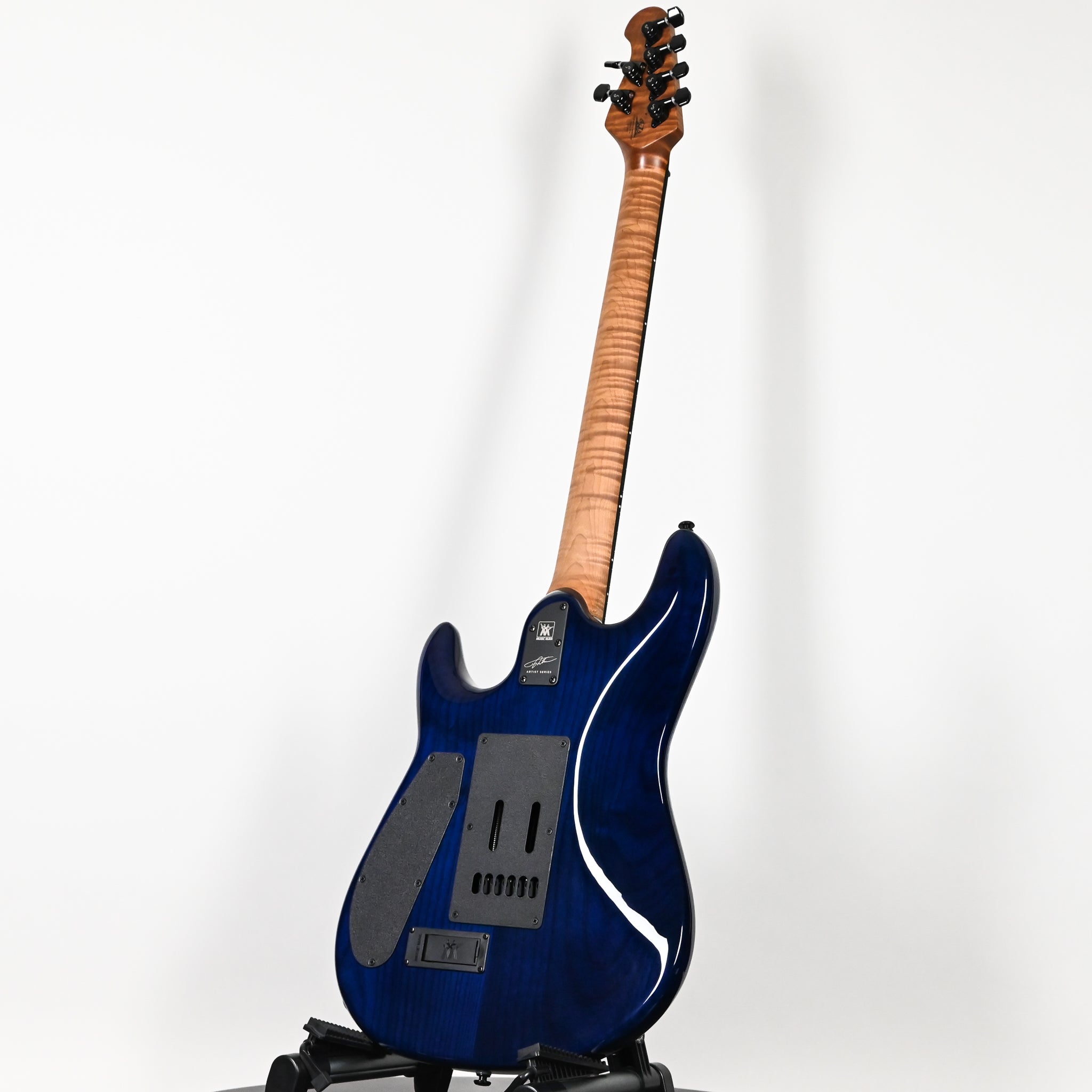 Bridge: Custom Music Man® floating tremolo, made of black plated, hardened steel with black plated steel saddles