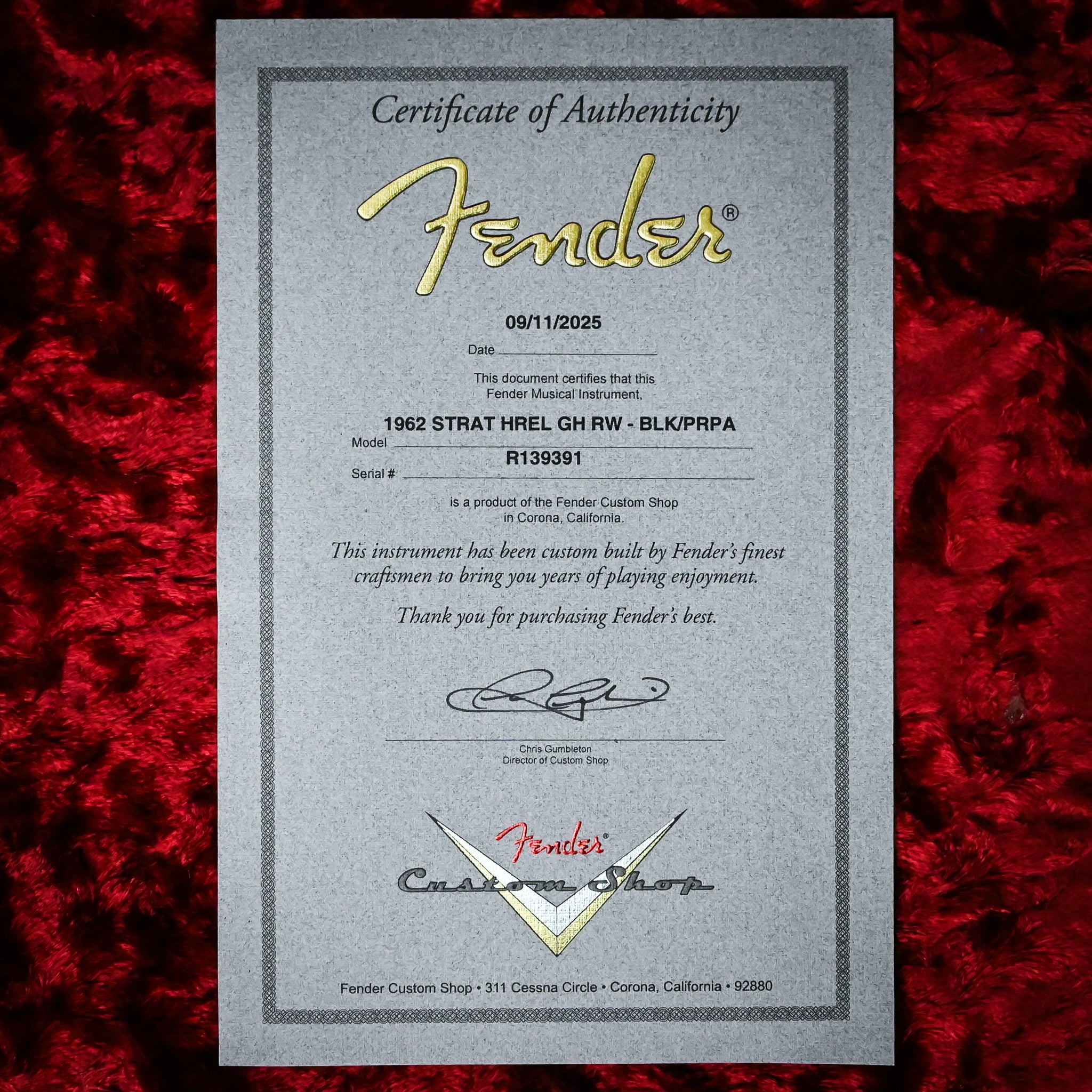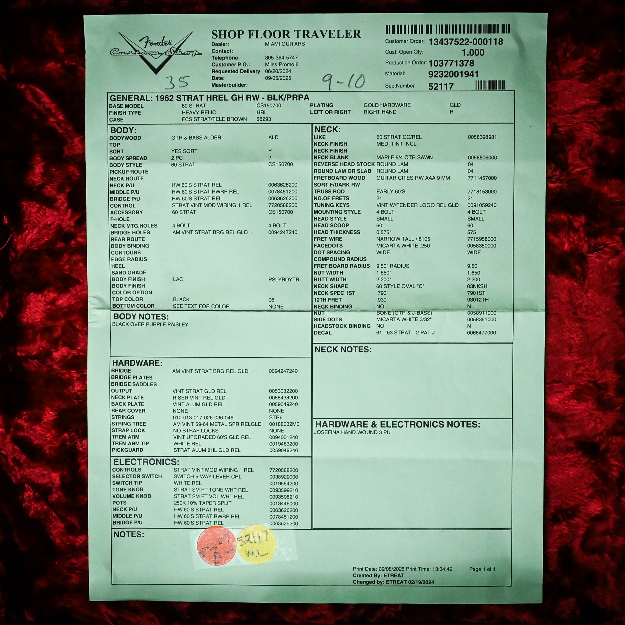 Fender Custom Shop 1962 Stratocaster w/ Gold Hardware & Josefina Handwound Pickups, Heavy Relic- Black/ Purple Paisley 2025 (R139391)