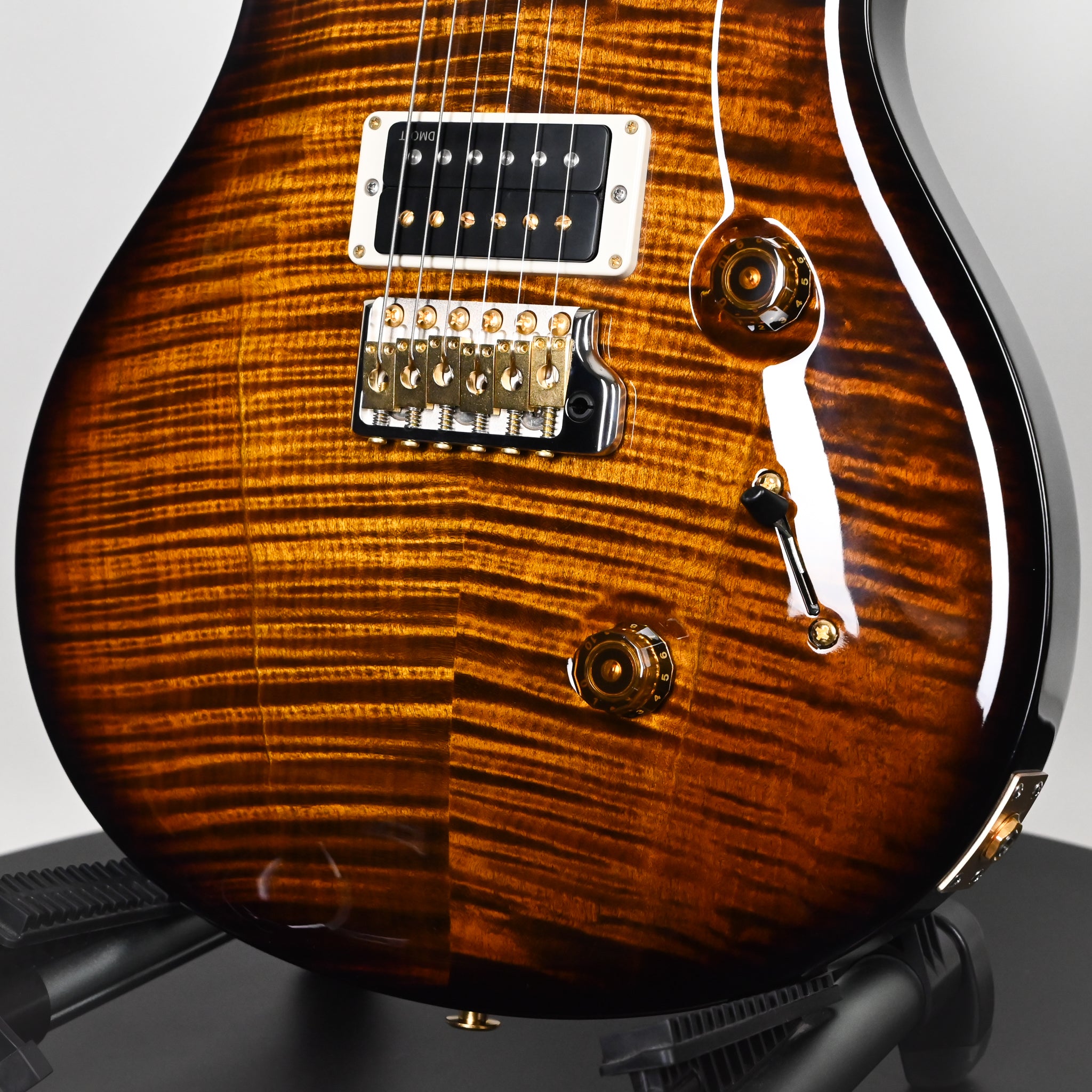 The Custom 24 is outfitted with PRS DMO treble and bass pickups with volume and tone controls and a 5-way blade switch. DMO (Dynamic, Musical, Open) pickups were personally designed by Paul Reed Smith and the PRS New Products Engineering team. From our own hands-on research into coveted vintage pickup models to advancements in signal analyzation and “tuning” technology, these pickups incorporate every detail of pickup knowledge PRS has gained in recent years of R&D.