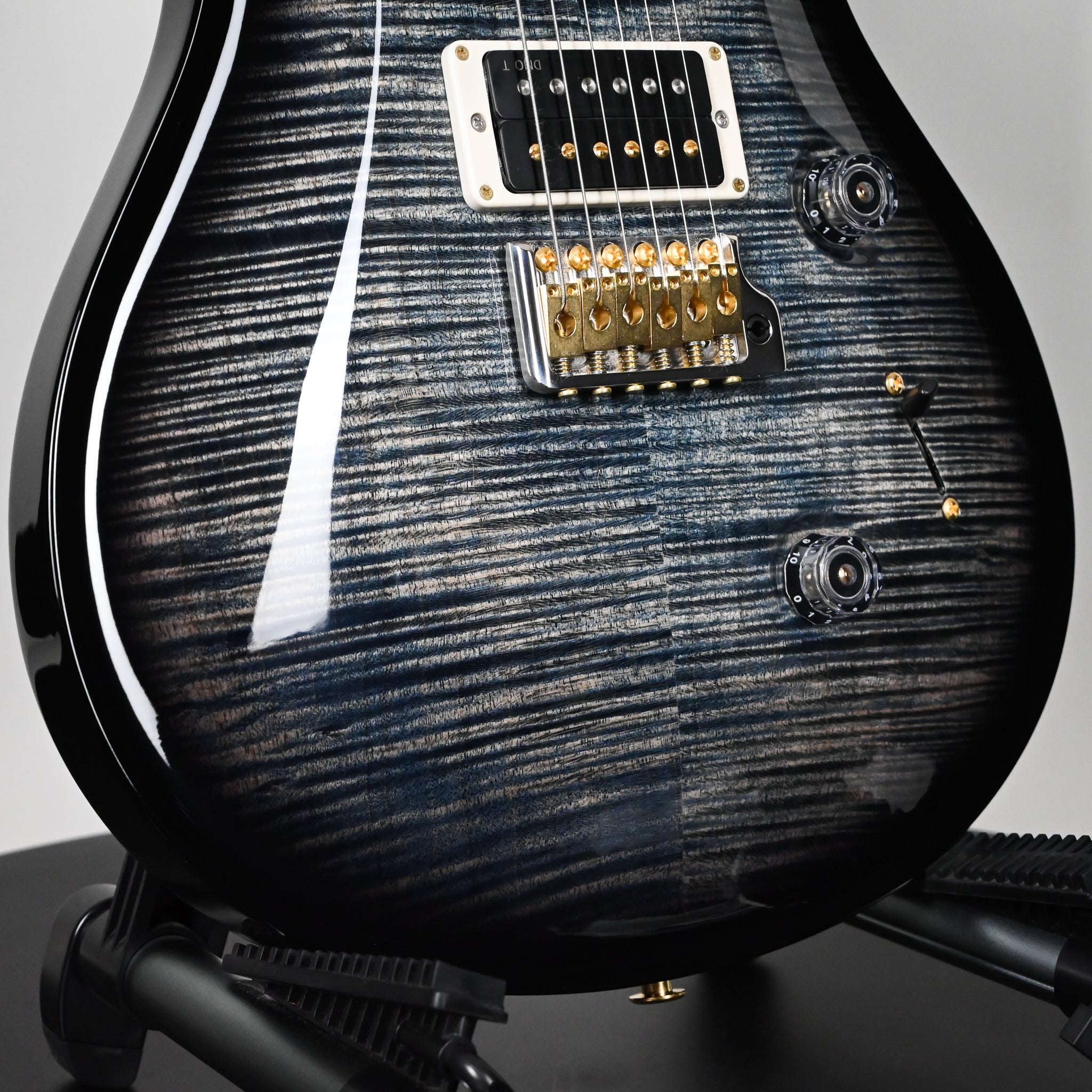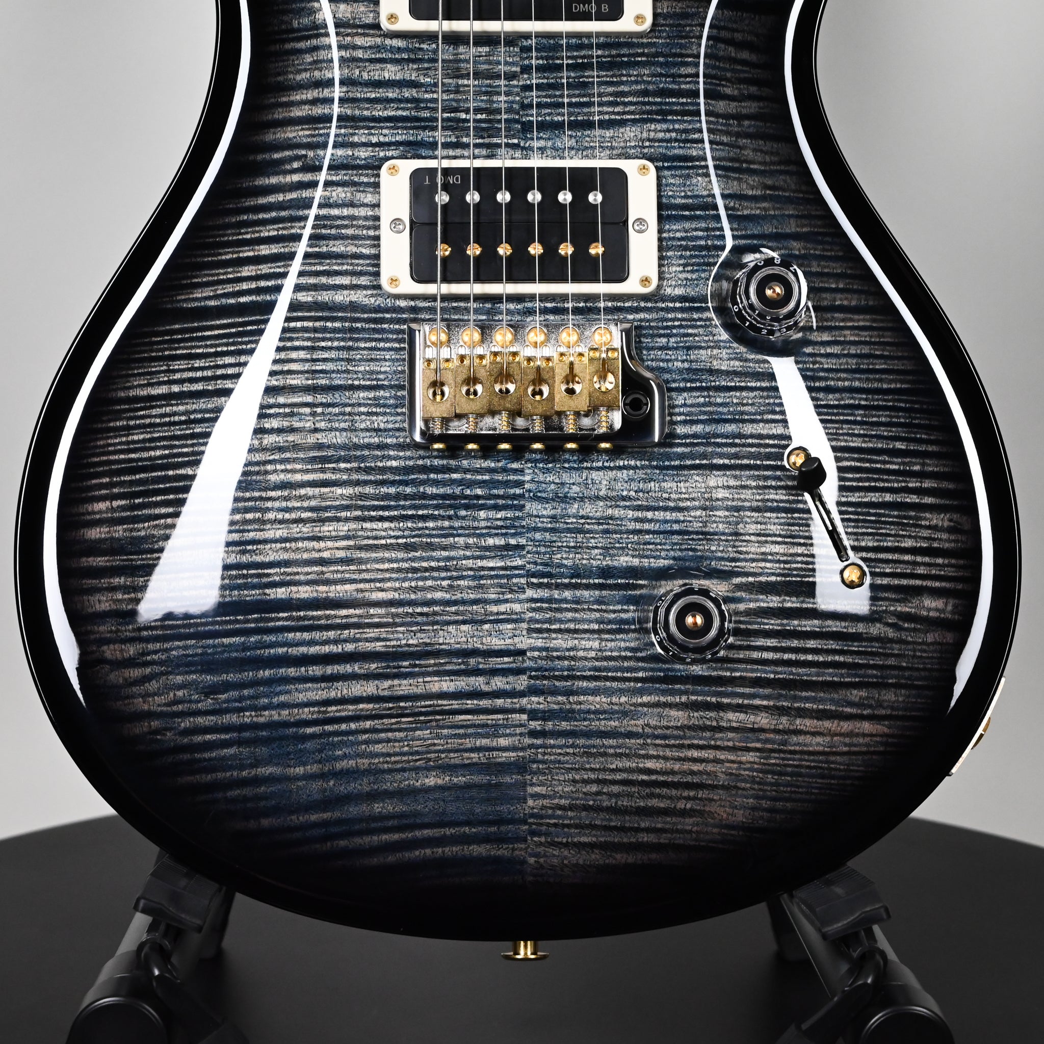 The Custom 24 is outfitted with PRS DMO treble and bass pickups with volume and tone controls and a 5-way blade switch. DMO (Dynamic, Musical, Open) pickups were personally designed by Paul Reed Smith and the PRS New Products Engineering team. From our own hands-on research into coveted vintage pickup models to advancements in signal analyzation and “tuning” technology, these pickups incorporate every detail of pickup knowledge PRS has gained in recent years of R&D.