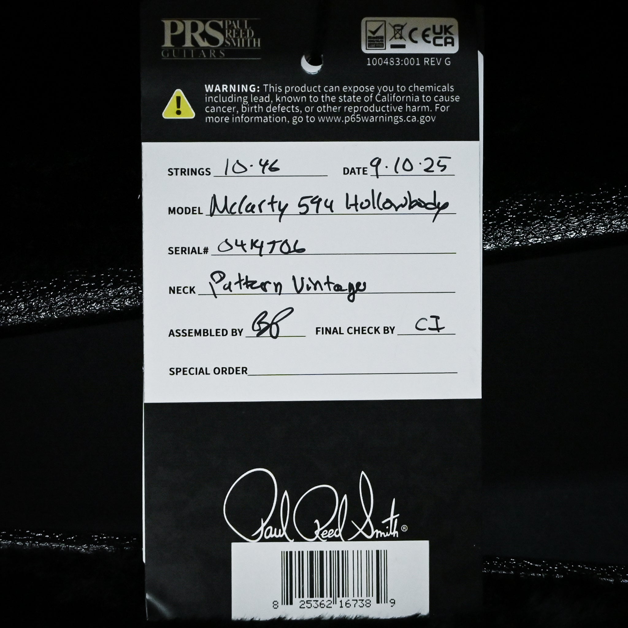 Whether you are looking for rich, authentic humbucking tones or nuanced, sweet single-coil sounds, the McCarty 594 Hollowbody II will oblige with warmth and resonance. Additional appointments include, a bound, 22-fret, 24.594” scale length Pattern Vintage neck with rosewood fretboard and PRS trademark bird inlays.