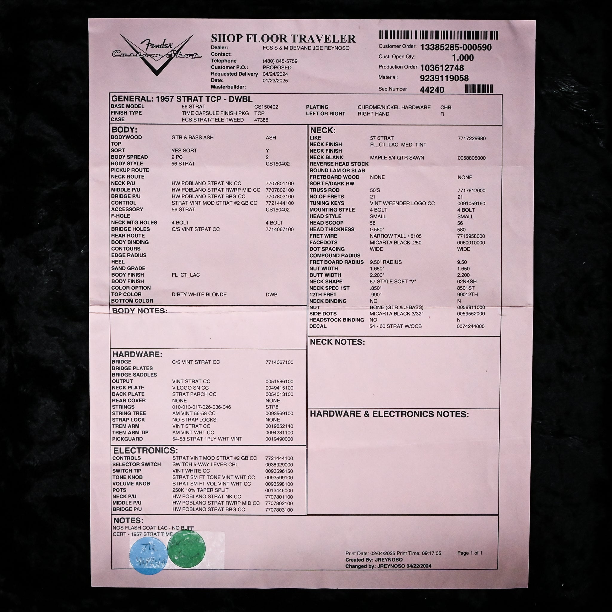 Fender Custom Shop 1957 Stratocaster Time Capsule Finish- Dirty White Blonde 2025 (CZ582366) B-Stock