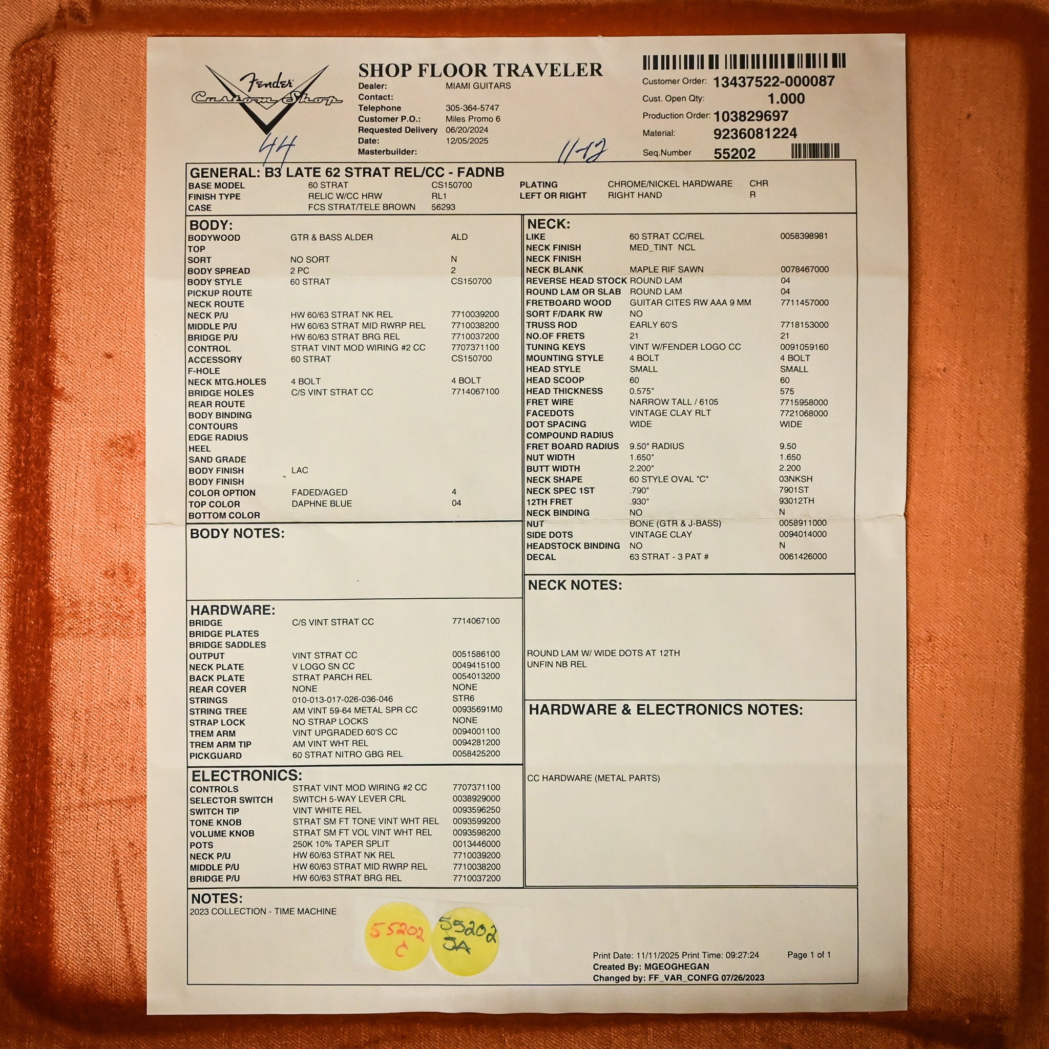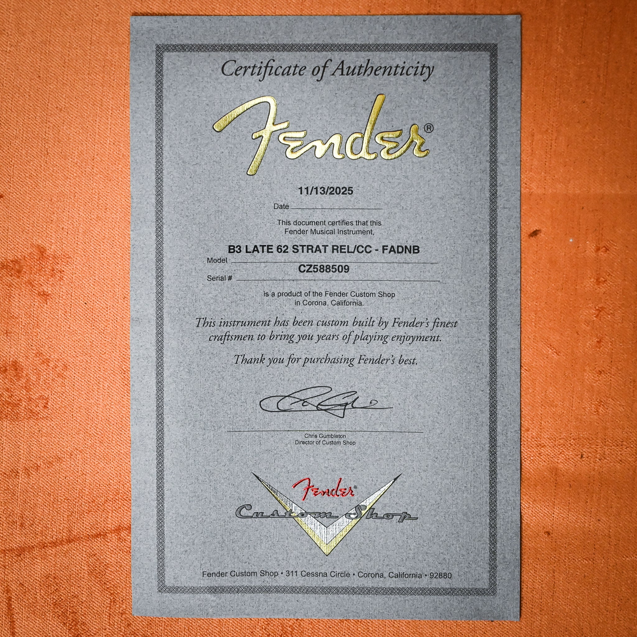 Fender Custom Shop Late-1962 Stratocaster Relic w/ Closet Classic Hardware- Faded Aged Daphne Blue 2025 (CZ588509)