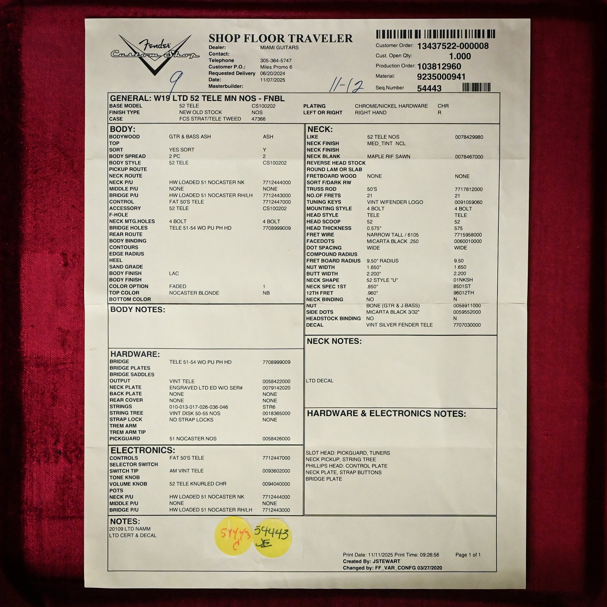 Bridge: '51-'54 Tele Bridge Neck Finish: Medium Tint Nitrocellulose Lacquer Neck Material: Rift Sawn Maple Neck Shape: '52 Style "U"