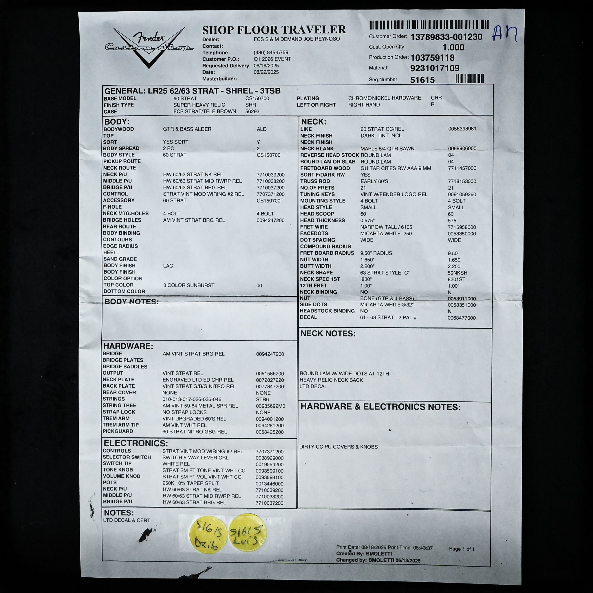 Body Finish: 3 Color Sunburst, Super Heavy Relic