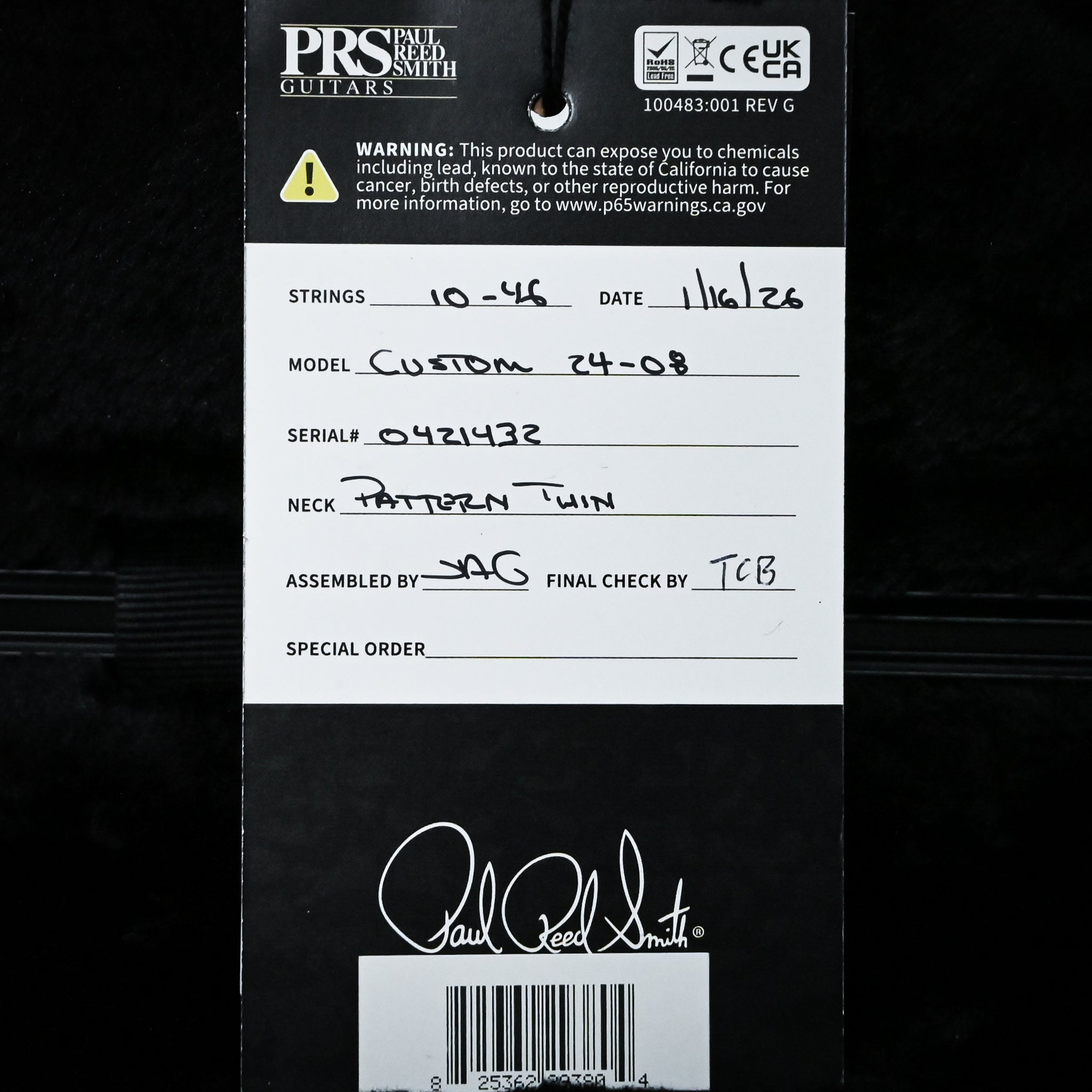 PRS Custom 24-08 Electric Guitar- Black Rainbow Holoflake Top & Binding 2026 (0421432)