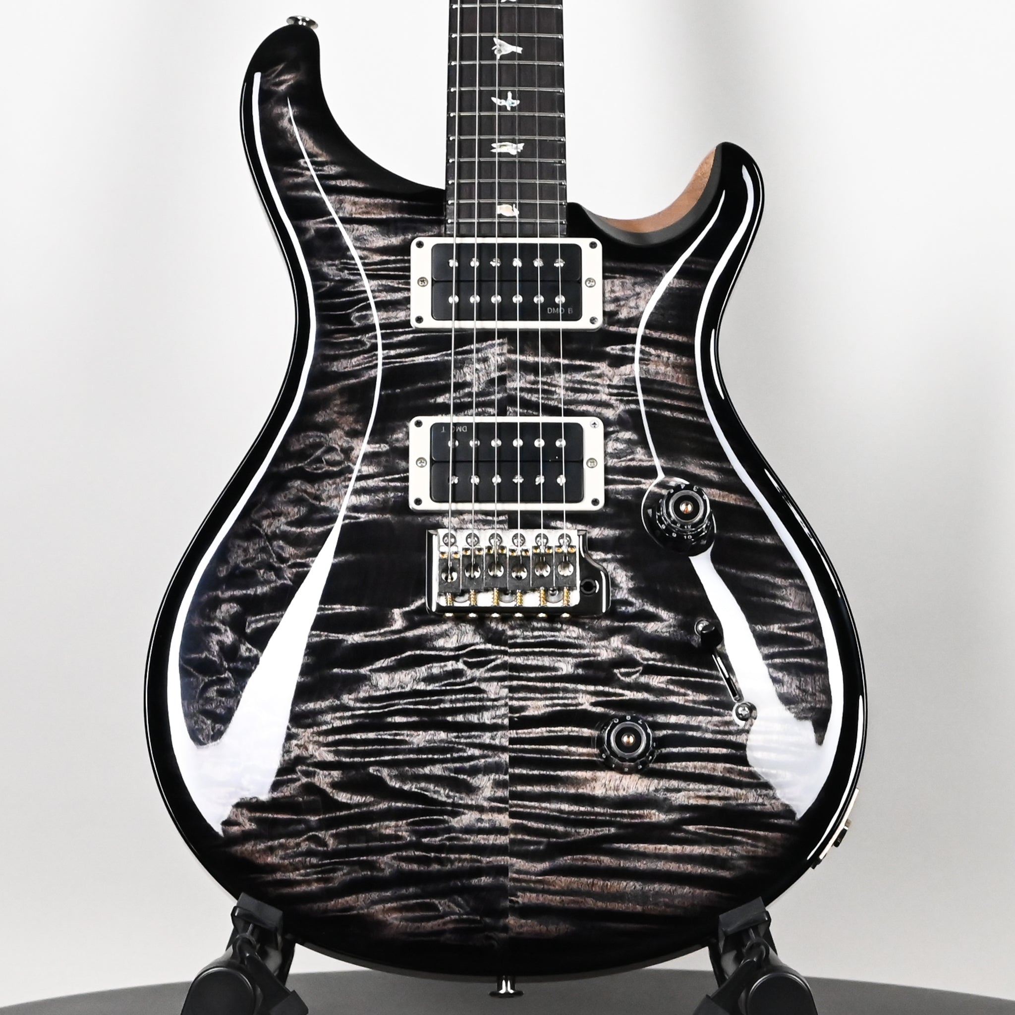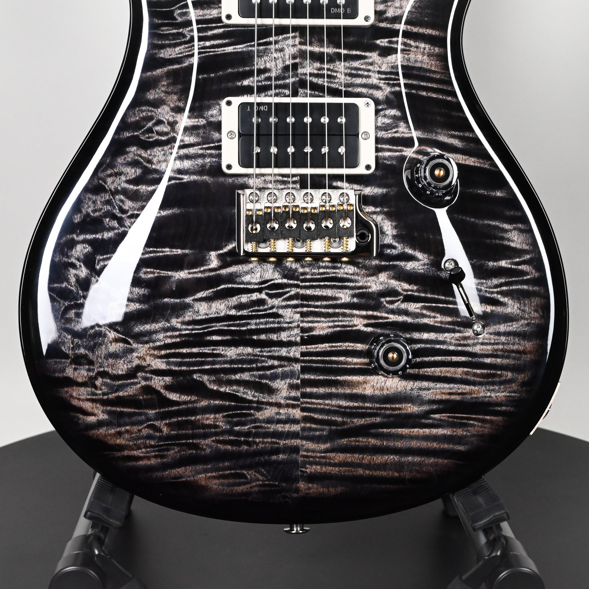 The Custom 24 is outfitted with PRS DMO treble and bass pickups with volume and tone controls and a 5-way blade switch. DMO (Dynamic, Musical, Open) pickups were personally designed by Paul Reed Smith and the PRS New Products Engineering team. From our own hands-on research into coveted vintage pickup models to advancements in signal analyzation and “tuning” technology, these pickups incorporate every detail of pickup knowledge PRS has gained in recent years of R&D.