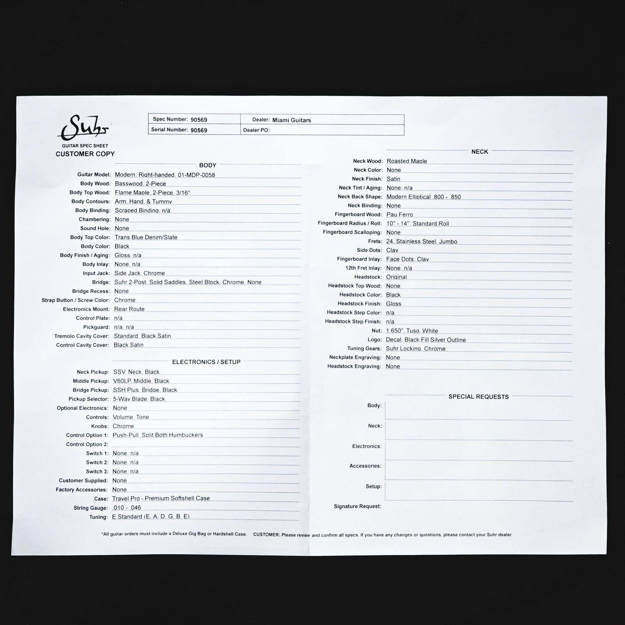 Suhr Modern Plus Electric Guitar- Trans Blue Denim Slate 2025 (90569)