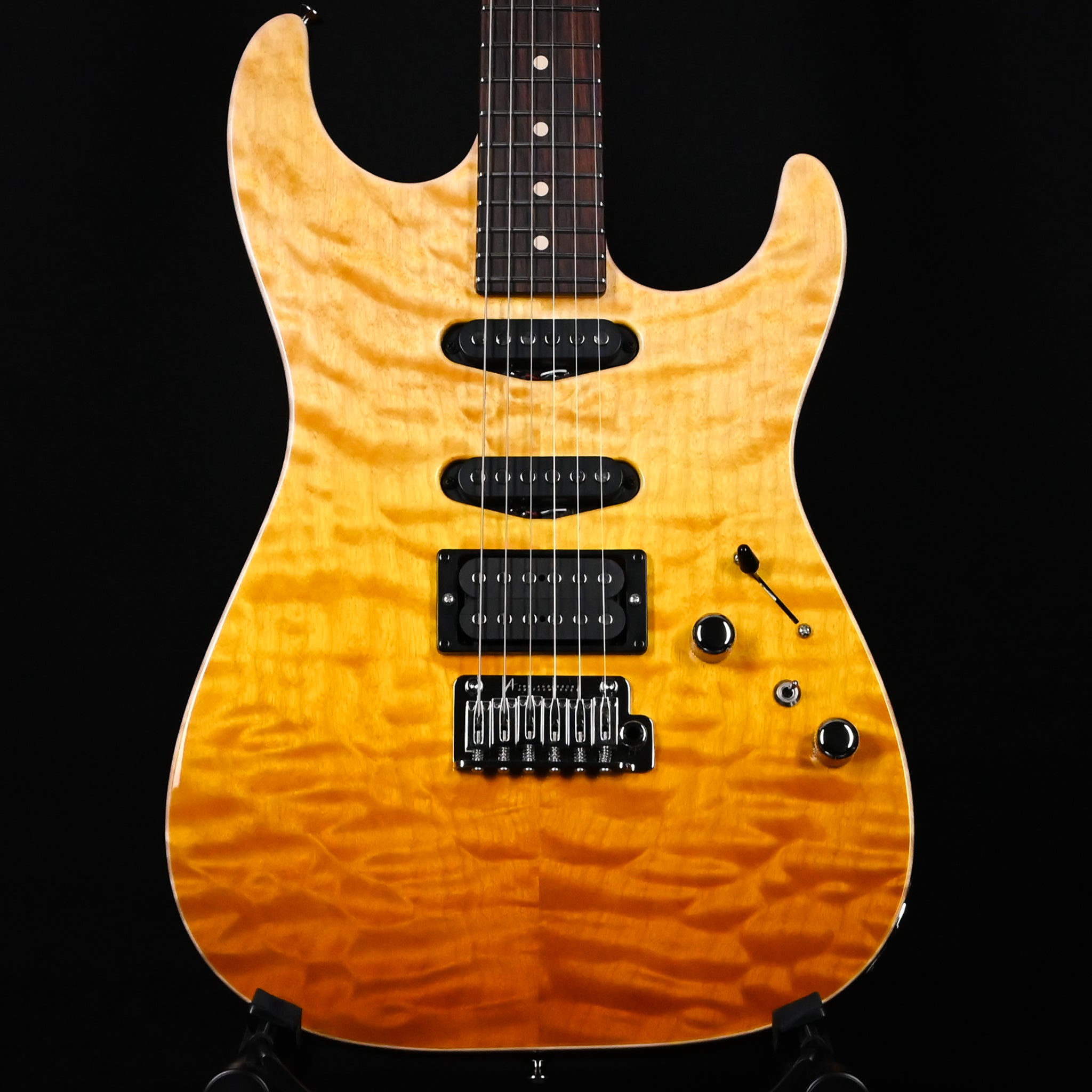 Body Style:Solid Body Wood:Quilt Maple Top on Alder Special Selection:n/a Finish Type:Gloss: Beautiful High Gloss Finish Body Finish:Honey Surf with Binding Body Back Color:Matching Back